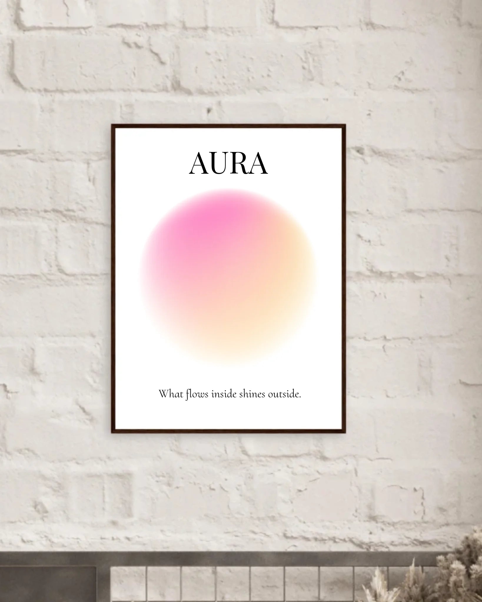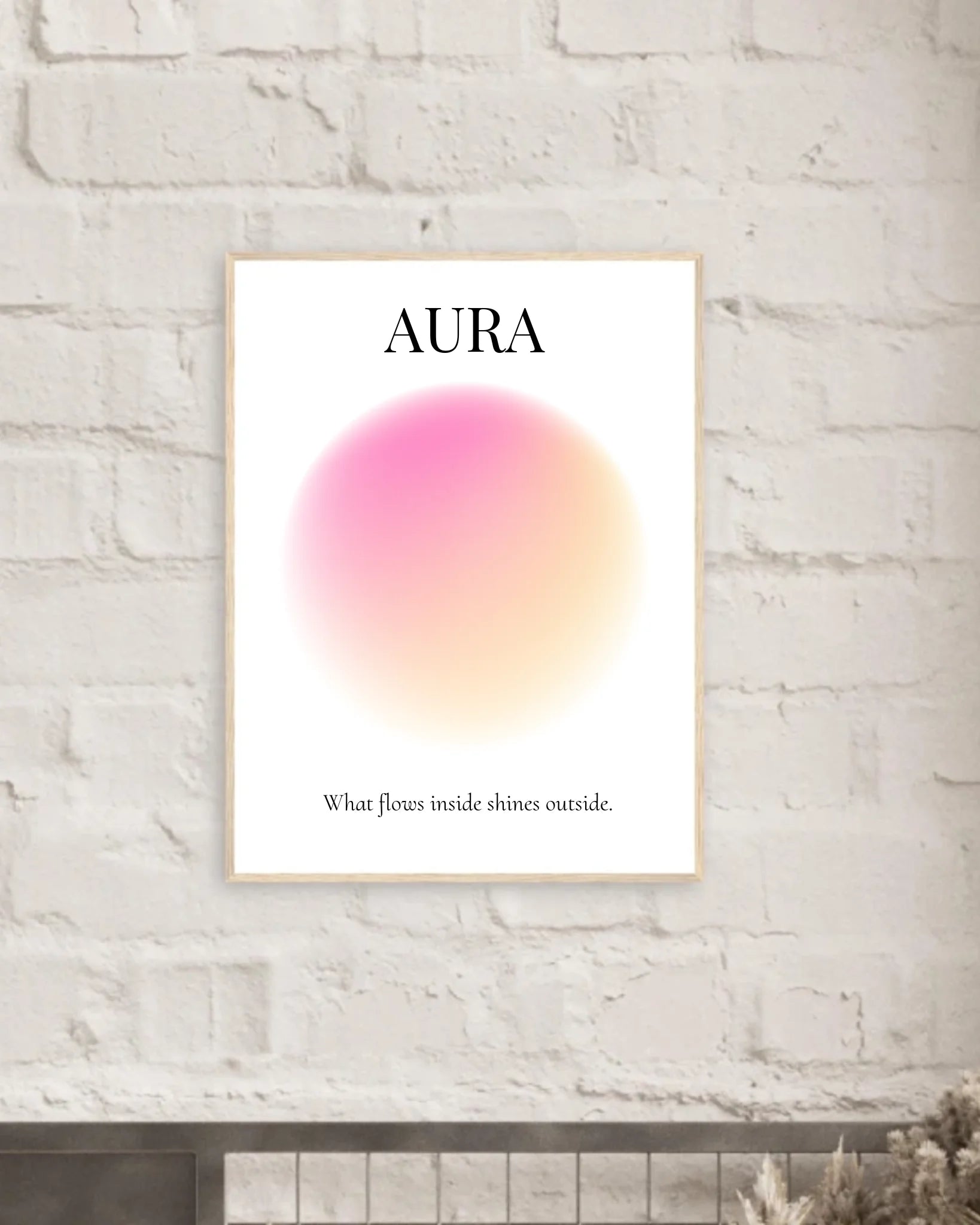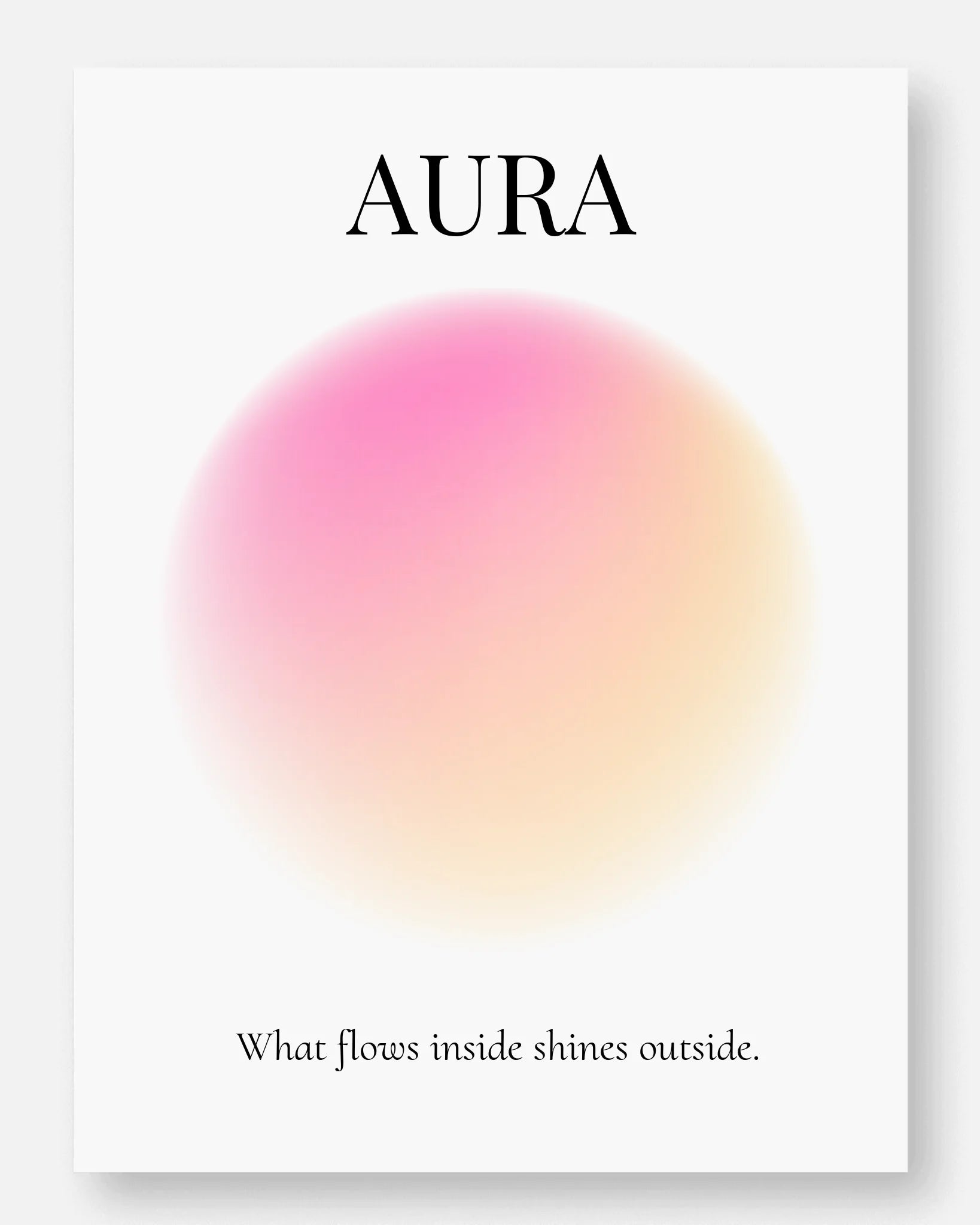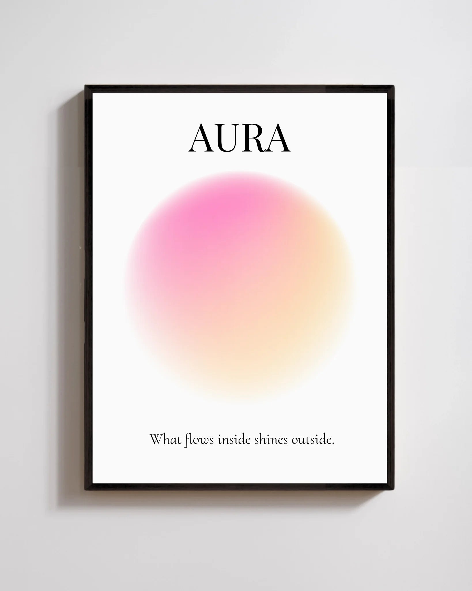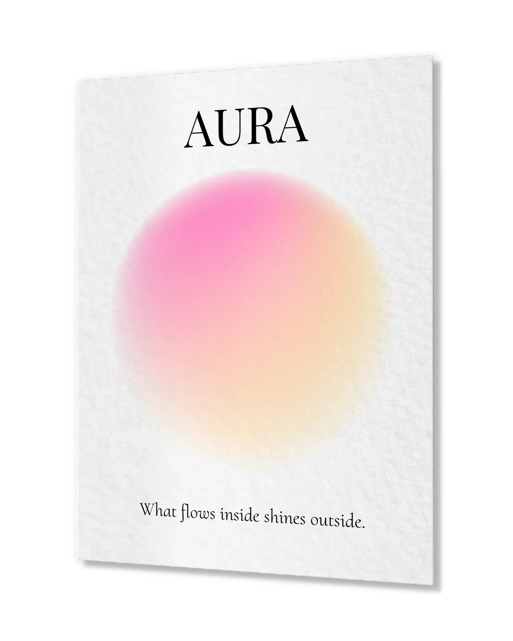 Dieses Aura Poster kombiniert sanfte Rosa- und Gelbtöne zu einem warmen, leuchtenden Farbverlauf. Die Farben stehen für Liebe, Lebensfreude, inneres Licht und positive Energie und schaffen eine harmonische, stärkende Atmosphäre.