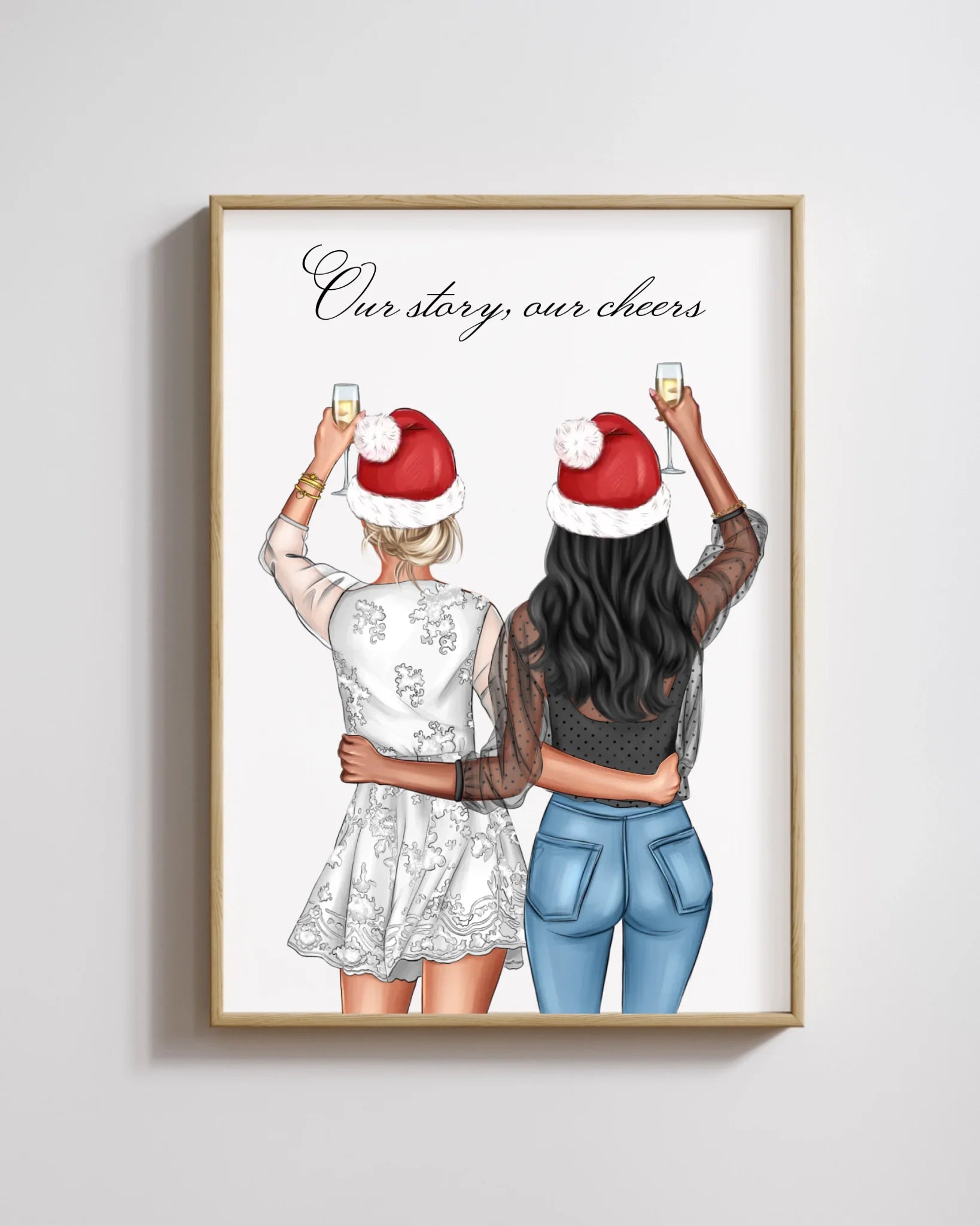 Our story, our cheers - personalisiertes Freundinnen-Poster mit Weihnachtsmotiv