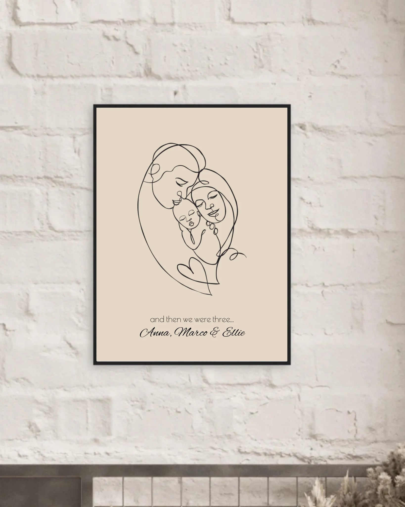 Ja, absolut! Durch die minimalistische Fineline-Zeichnung und die Personalisierung ist es ein berührendes Geschenk zur Geburt, Taufe oder für frischgebackene Familien. Ein echtes Kunstwerk der Liebe - modern und zeitlos.