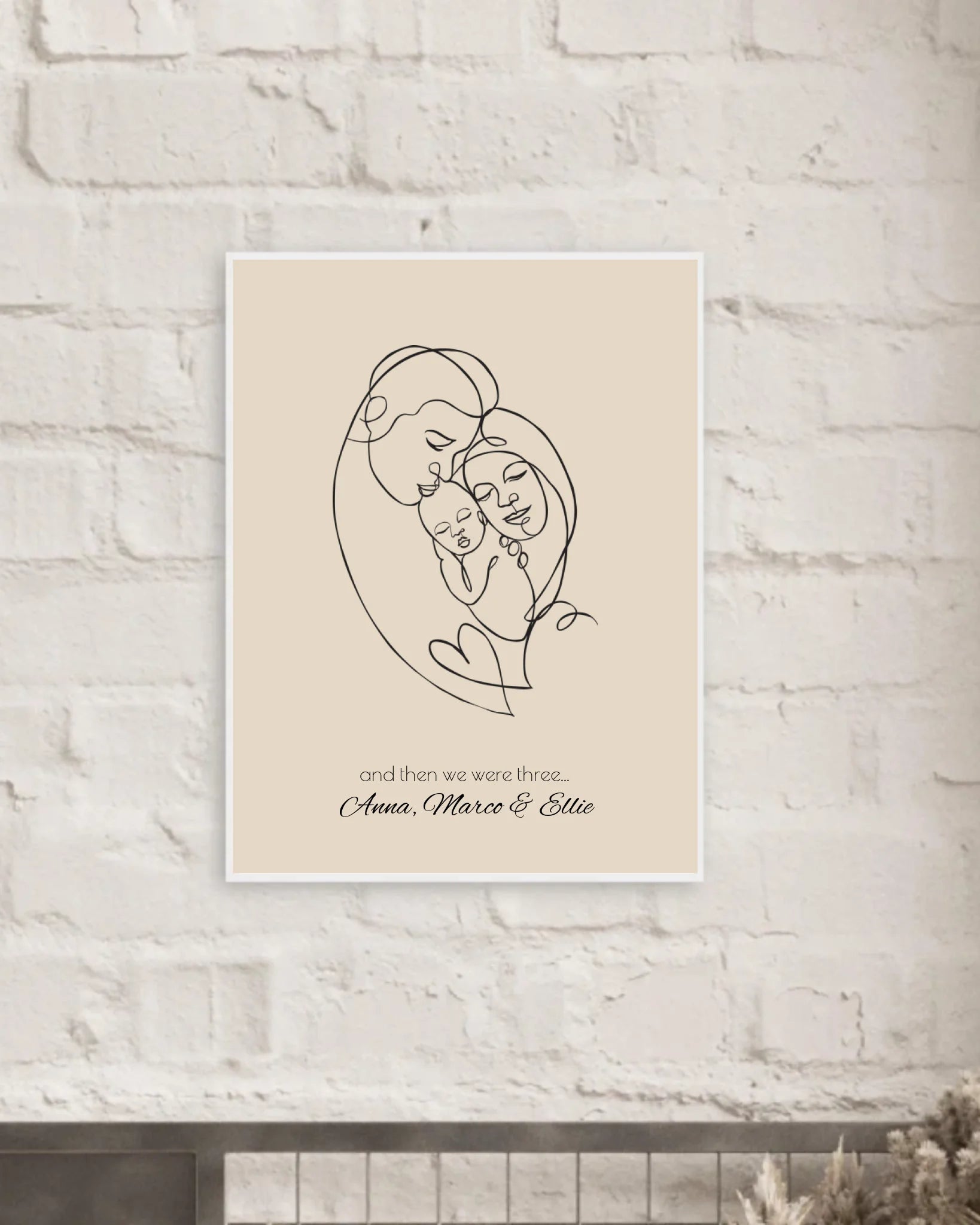 Ja, absolut! Durch die minimalistische Fineline-Zeichnung und die Personalisierung ist es ein berührendes Geschenk zur Geburt, Taufe oder für frischgebackene Familien. Ein echtes Kunstwerk der Liebe - modern und zeitlos.