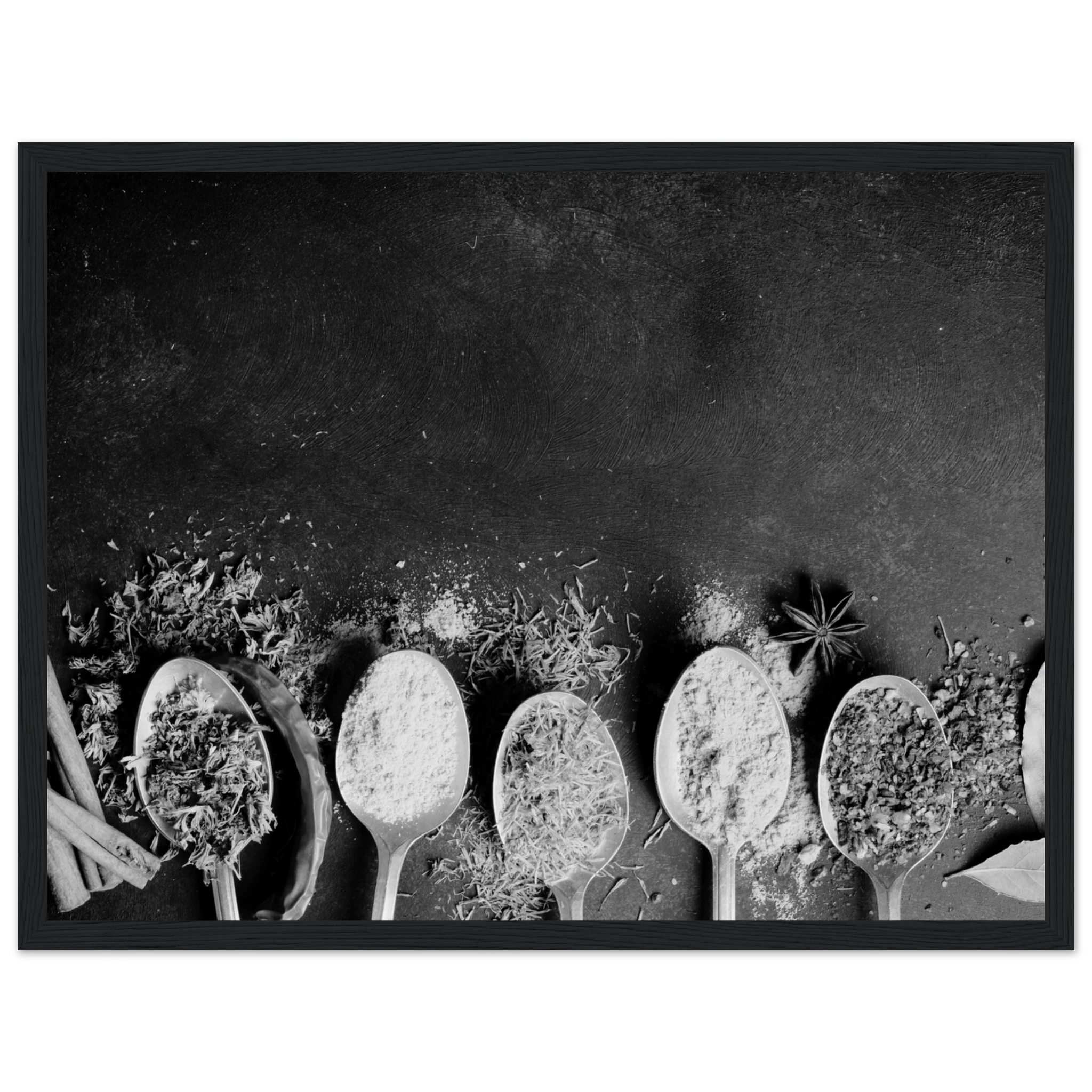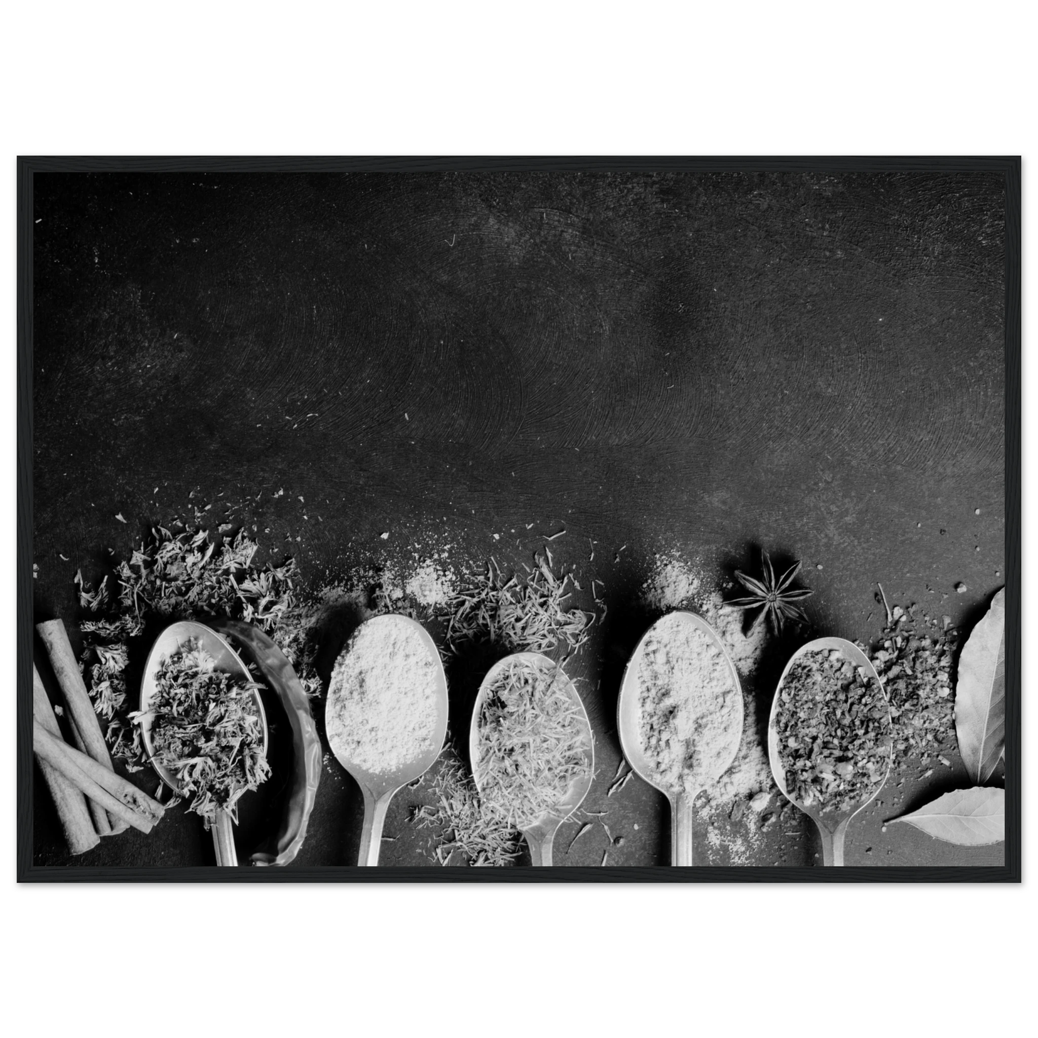 Küchen Poster schwarz weiß - Gewürze - Classic Matte Paper Wooden Framed Poster