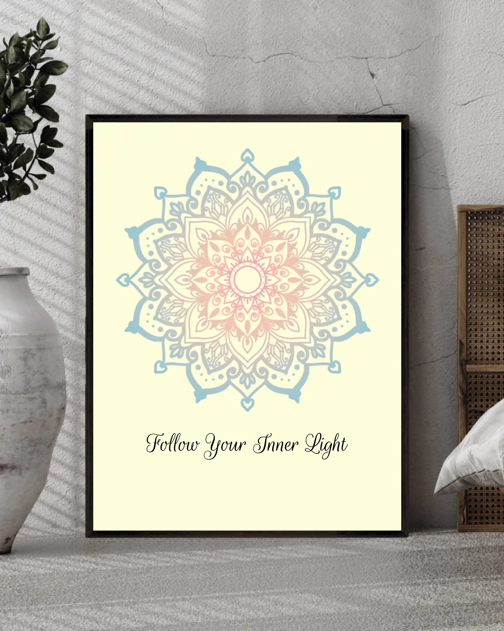 Das Mandala-Poster ist ideal für alle, die Ruhe, Achtsamkeit und positive Energie in ihren Alltag bringen möchten. Es eignet sich perfekt für Yoga- und Meditationsräume, das Home-Office oder als harmonischer Akzent im Wohnbereich.