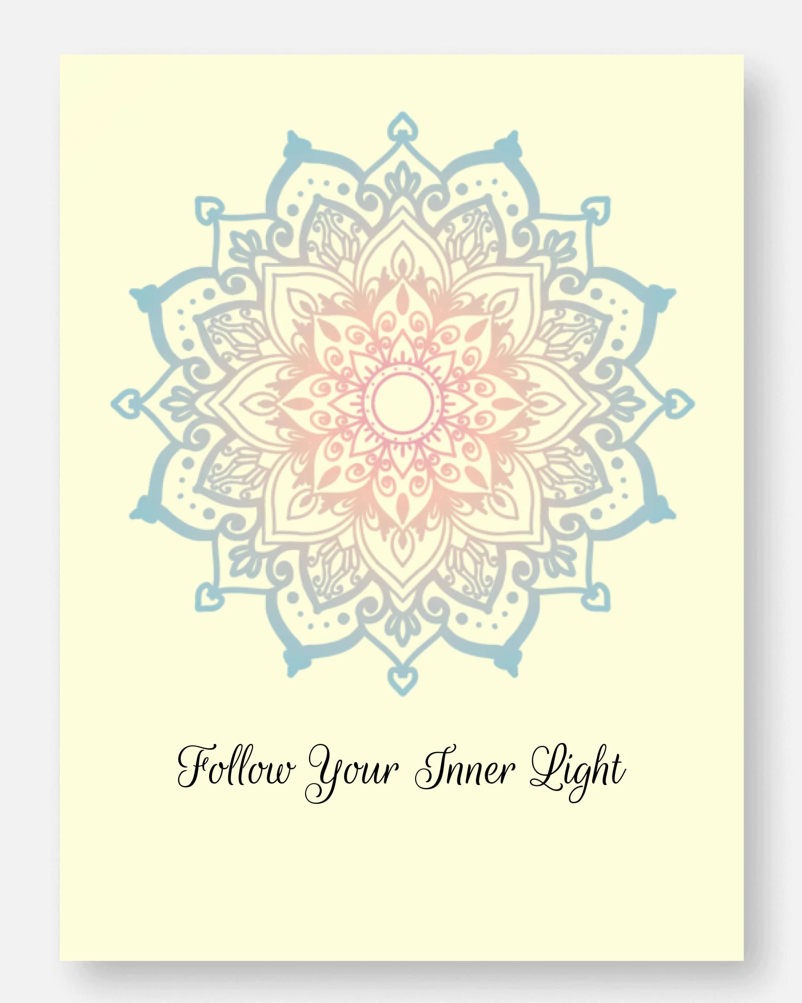 Dieses harmonisch gestaltete Mandala-Poster steht für Ruhe, Hoffnung und inneren Frieden. Die fein ausgearbeiteten Formen und die ausgewogene Farbgestaltung schaffen eine beruhigende Atmosphäre - ideal für Yoga-Räume, Meditationsbereiche oder als stilvoller Akzent in deinem Zuhause. Das Poster lädt dazu ein, innezuhalten, durchzuatmen und neue Energie zu tanken.