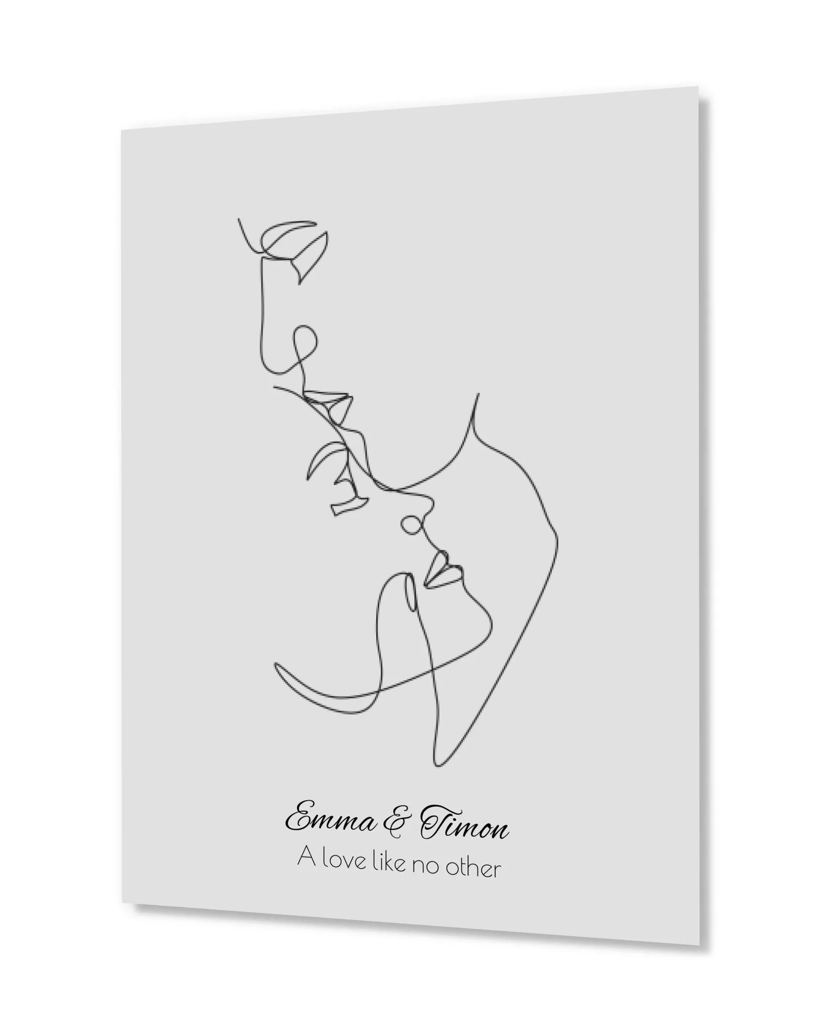 Fineline Poster für Paare | zarter Stirnkuss - personalisiert