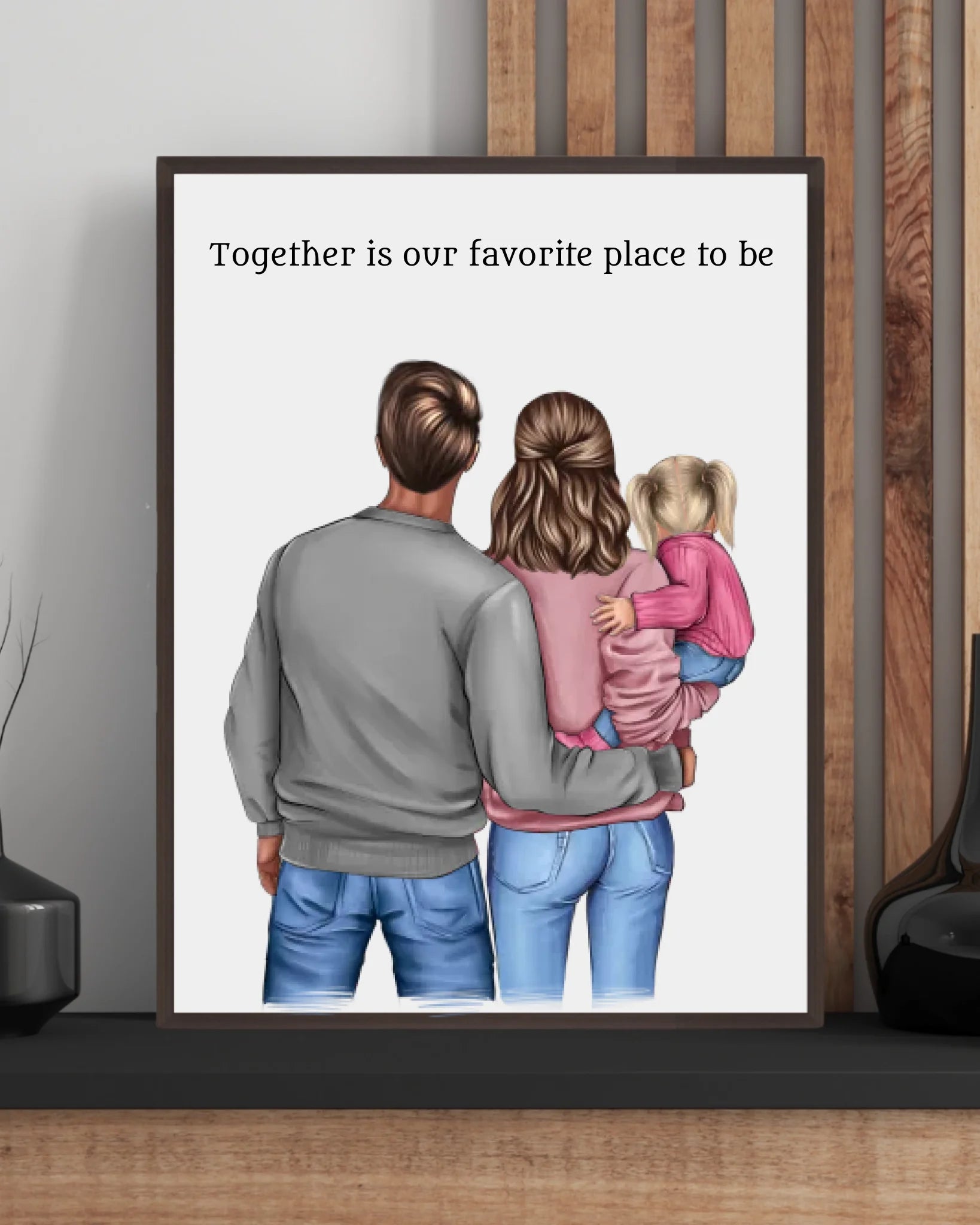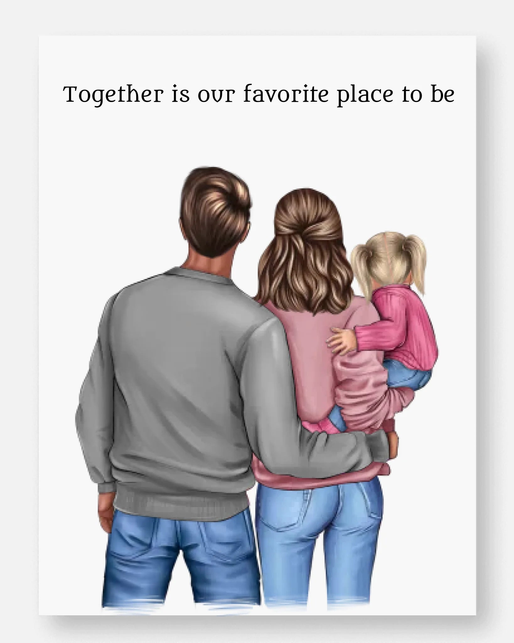 Gestalte dein eigenes Familienposter mit Mama, Papa und einem Kind ganz individuell: Wähle Hautfarben, Frisuren und Kleidung - so entsteht ein echtes Herzensstück. Ob zum Jahrestag, Einzug, Familienzuwachs oder einfach so, dieses Poster ist ein zeitlos schönes Geschenk mit emotionalem Wert.