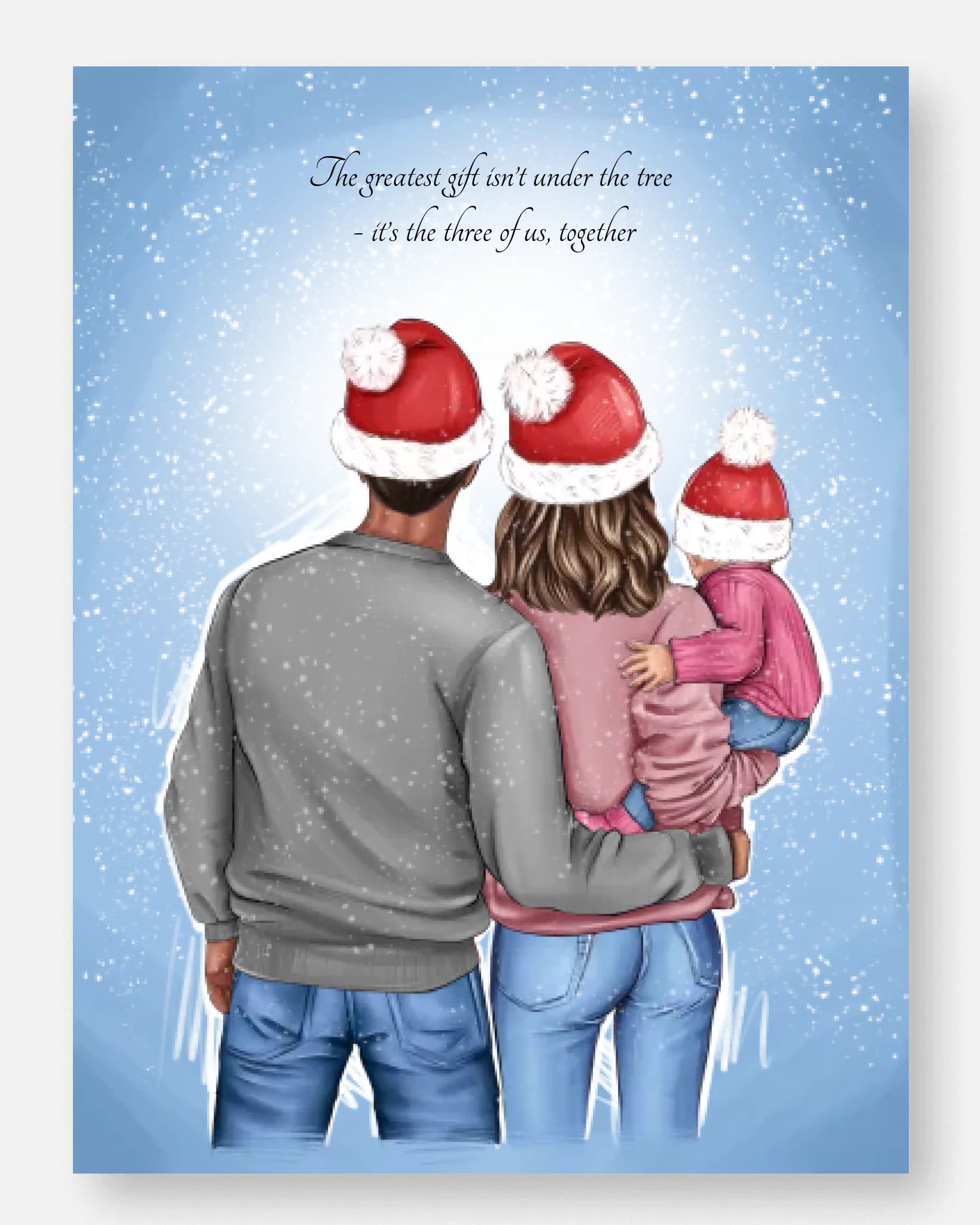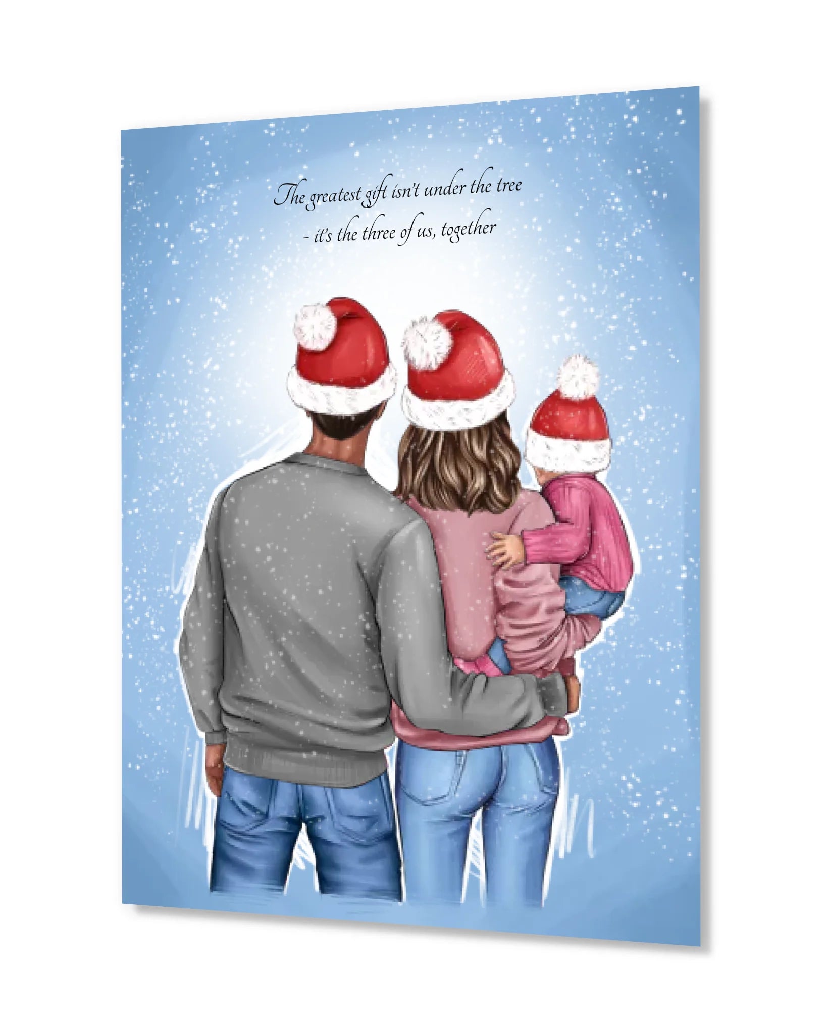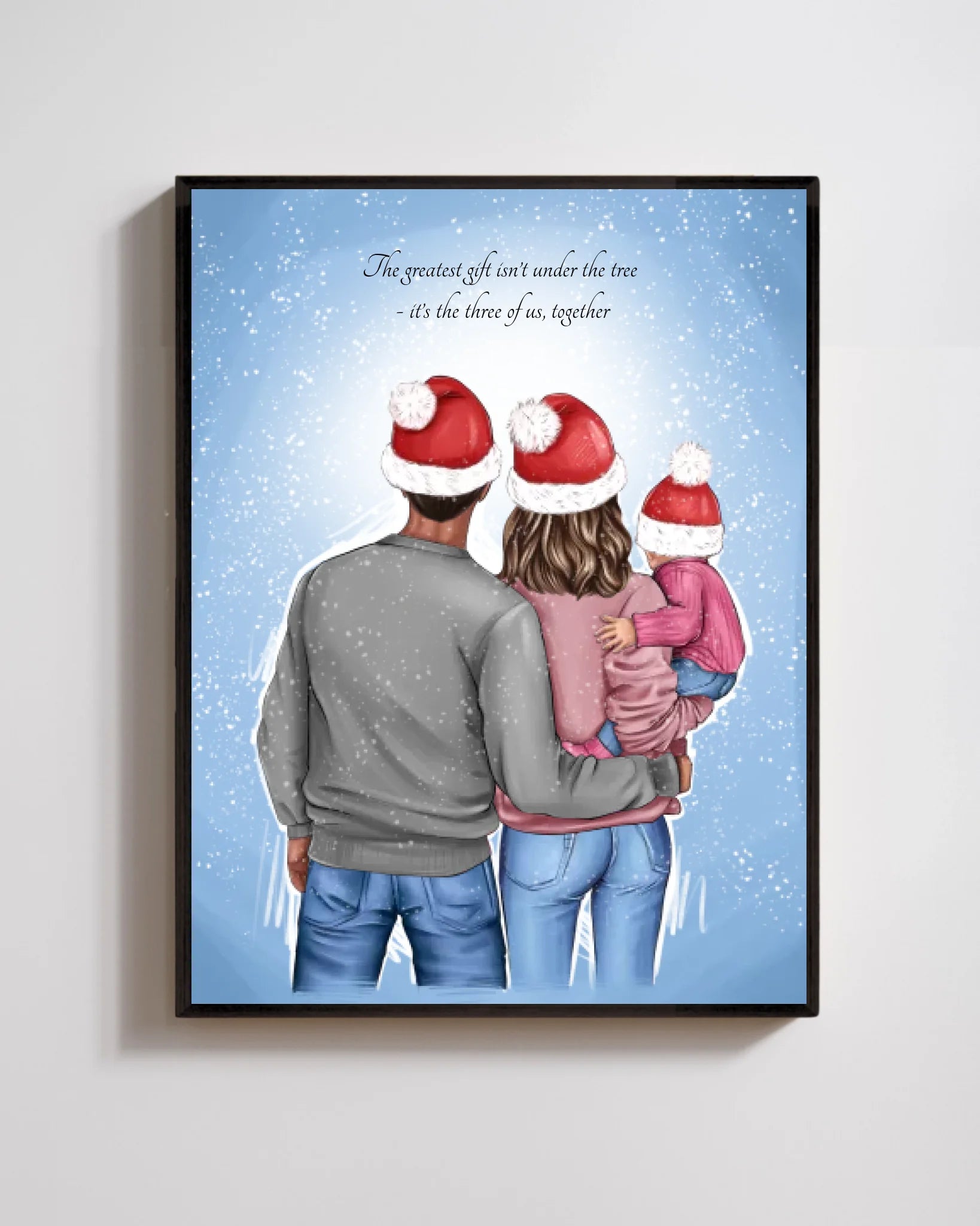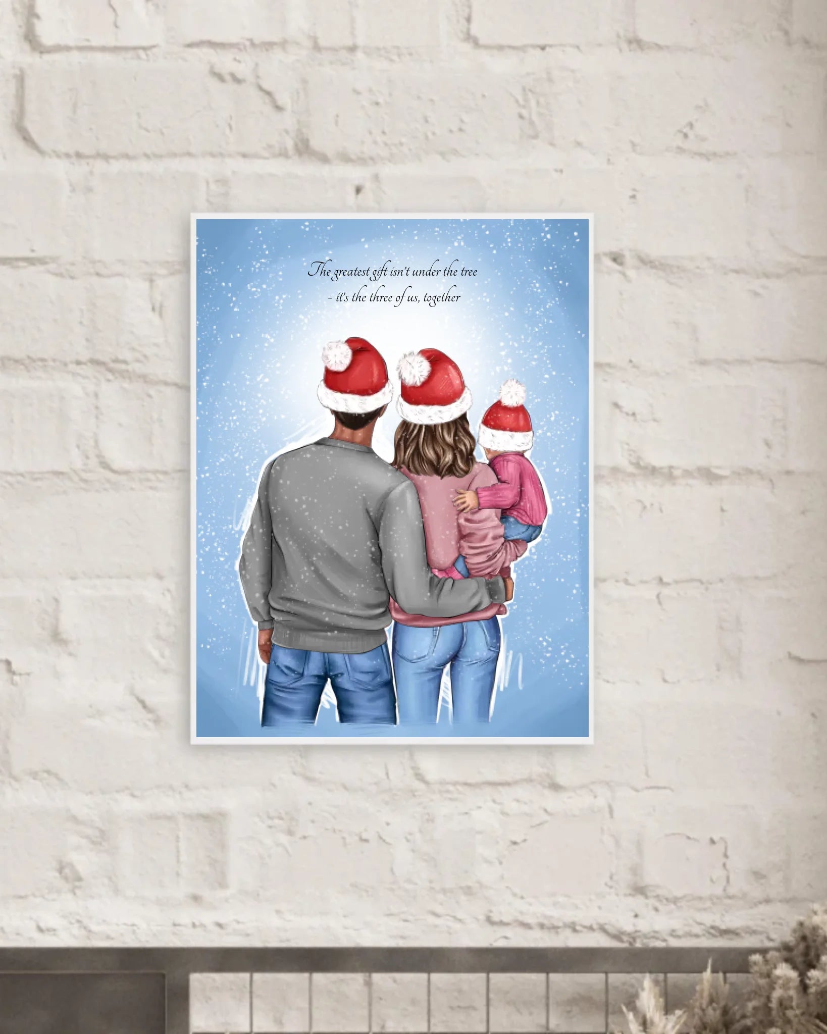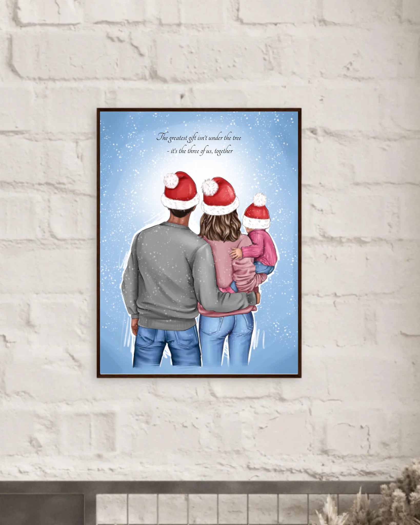 „The greatest gift isn't under the tree - it's the three of us, together.“ - Familienposter