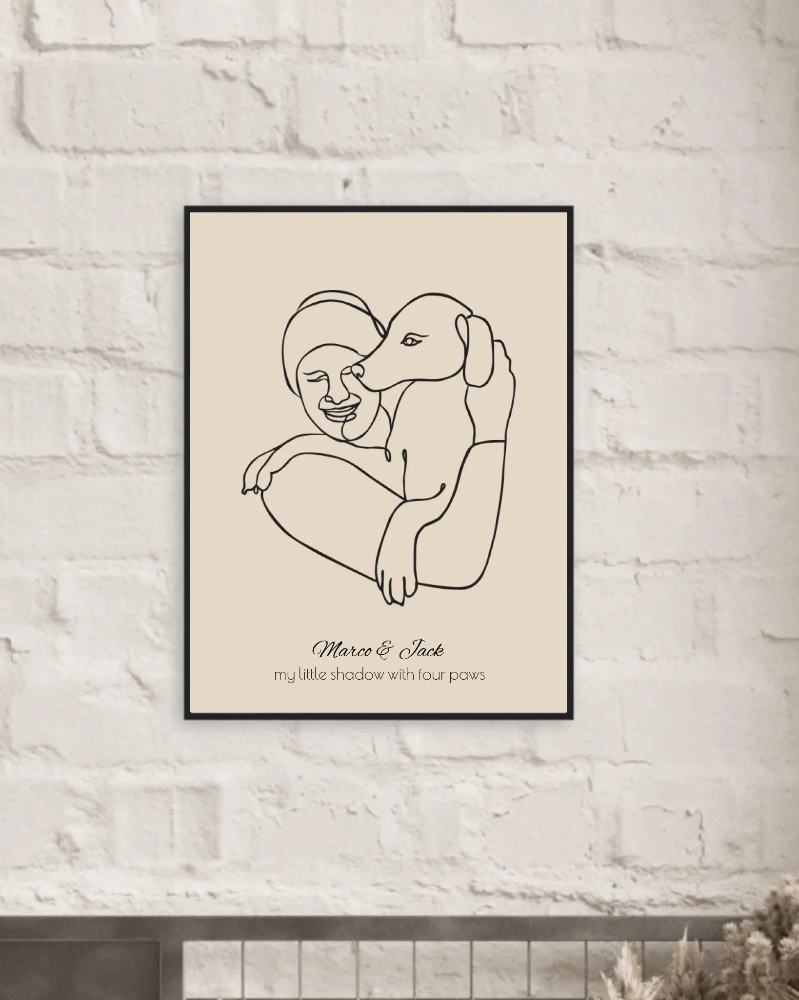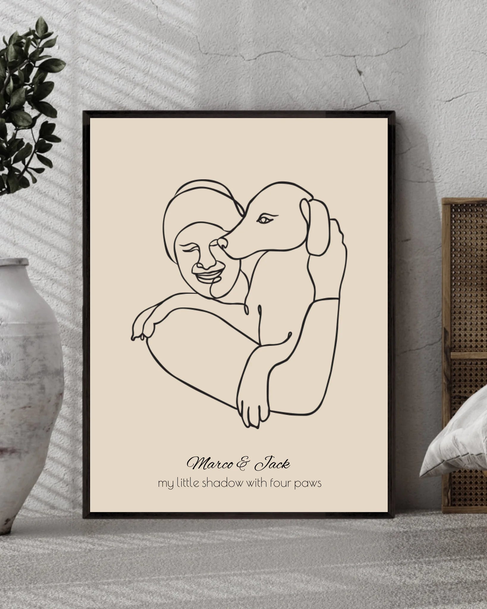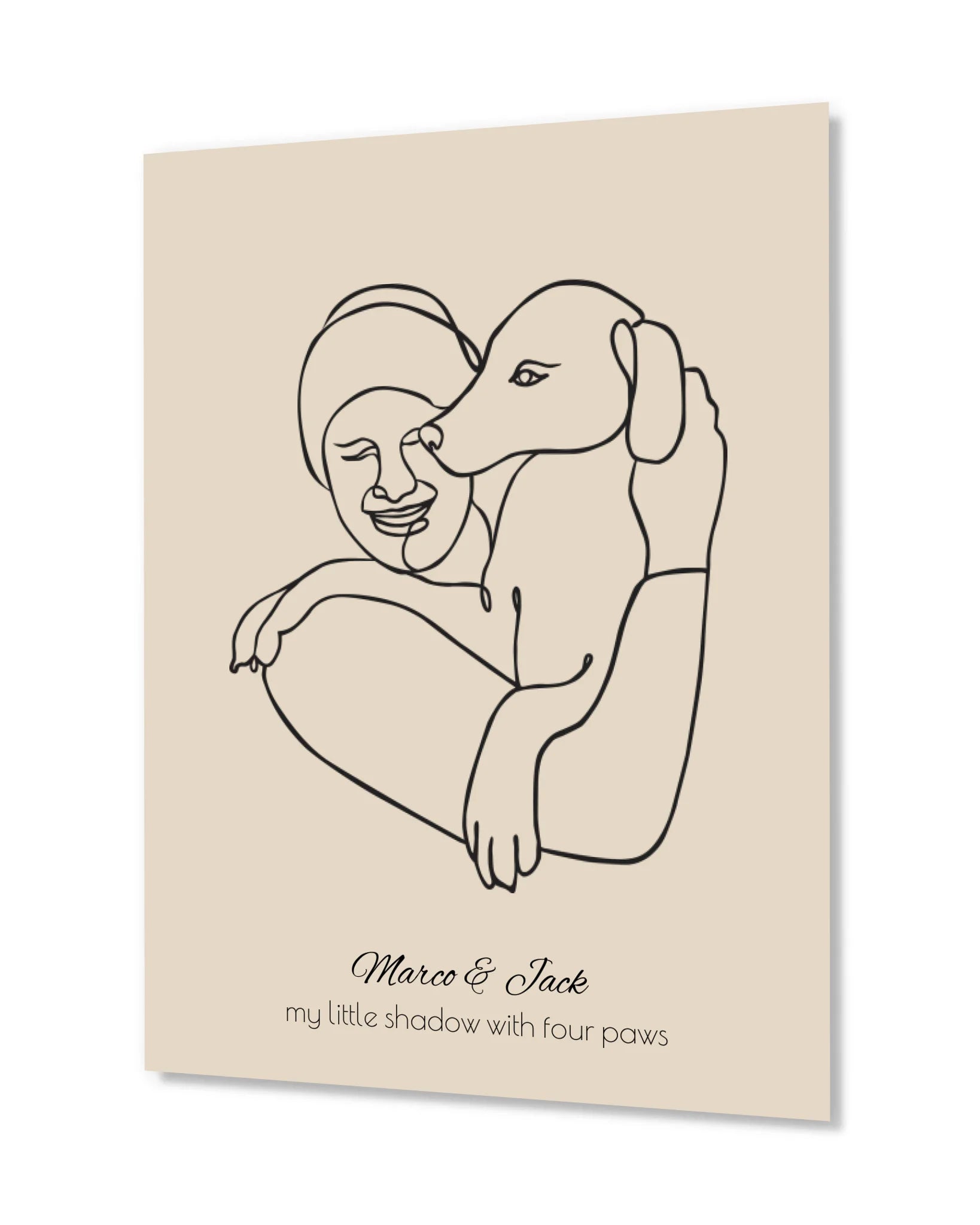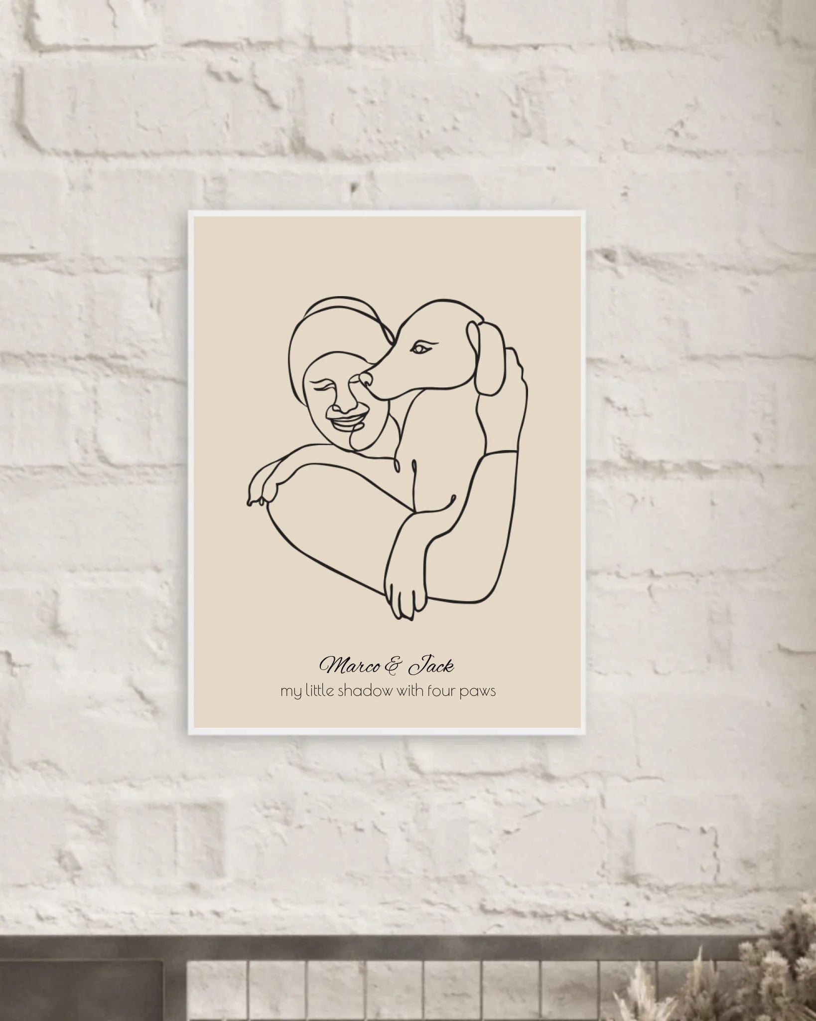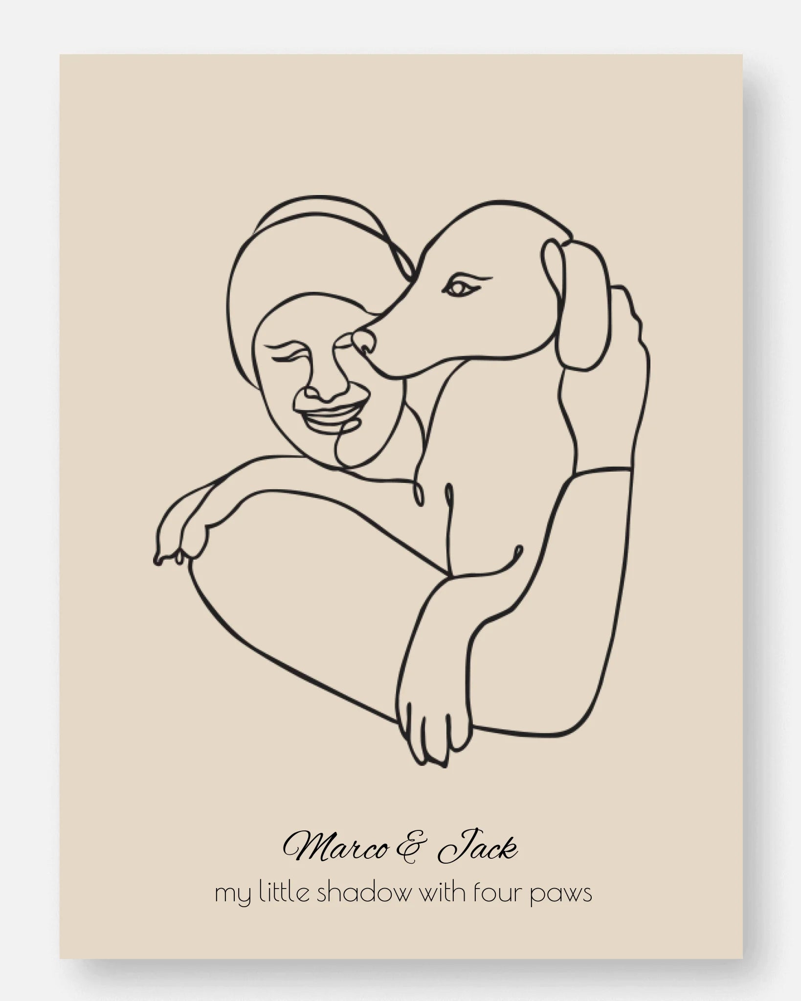 Dieses moderne Fineline-Poster zeigt die besondere Verbindung zwischen einem Jungen und seinem Hund - reduziert auf das Wesentliche, aber voller Wärme und Nähe. Mit deiner persönlichen Note wird daraus ein echtes Erinnerungsstück oder liebevolles Geschenk.