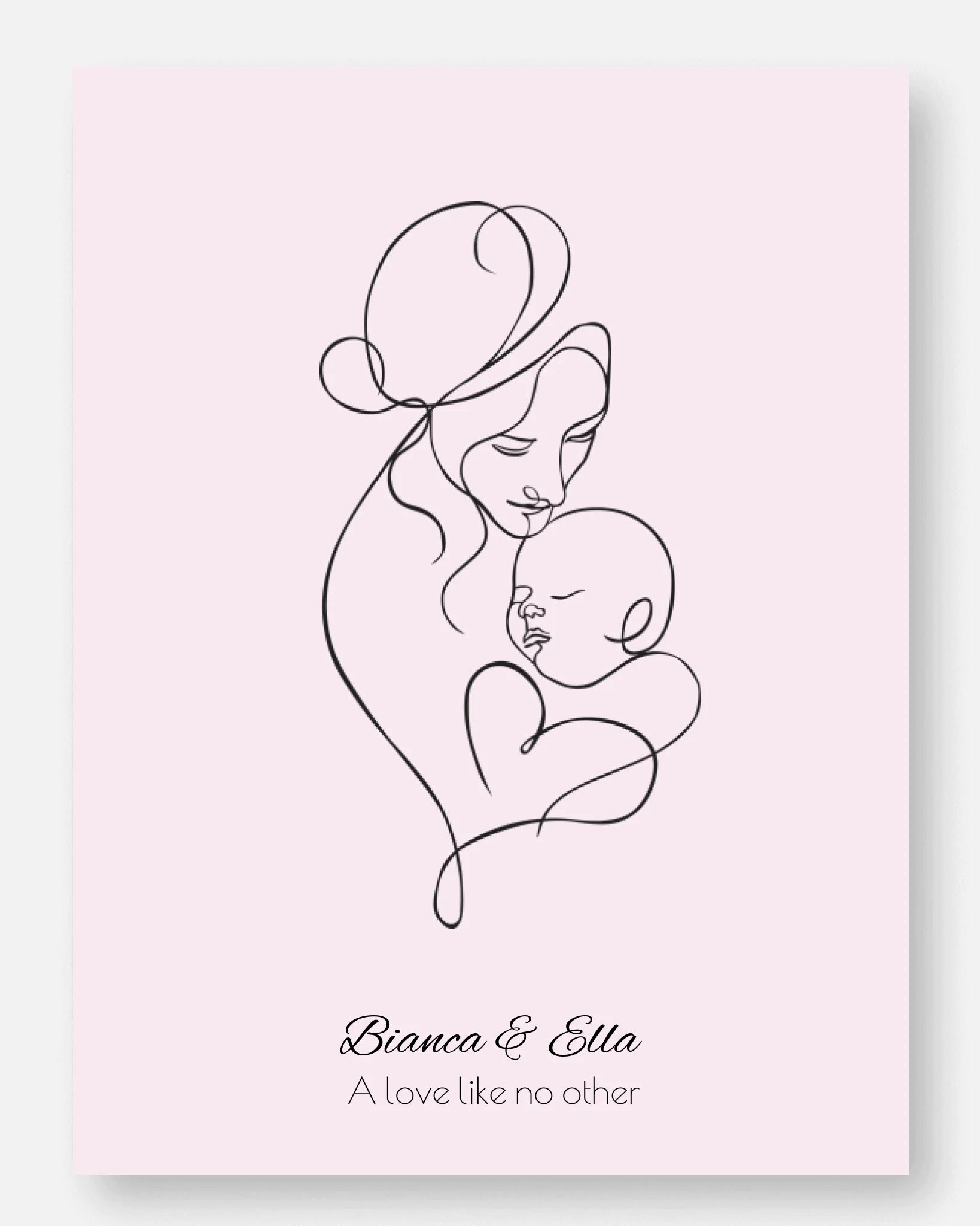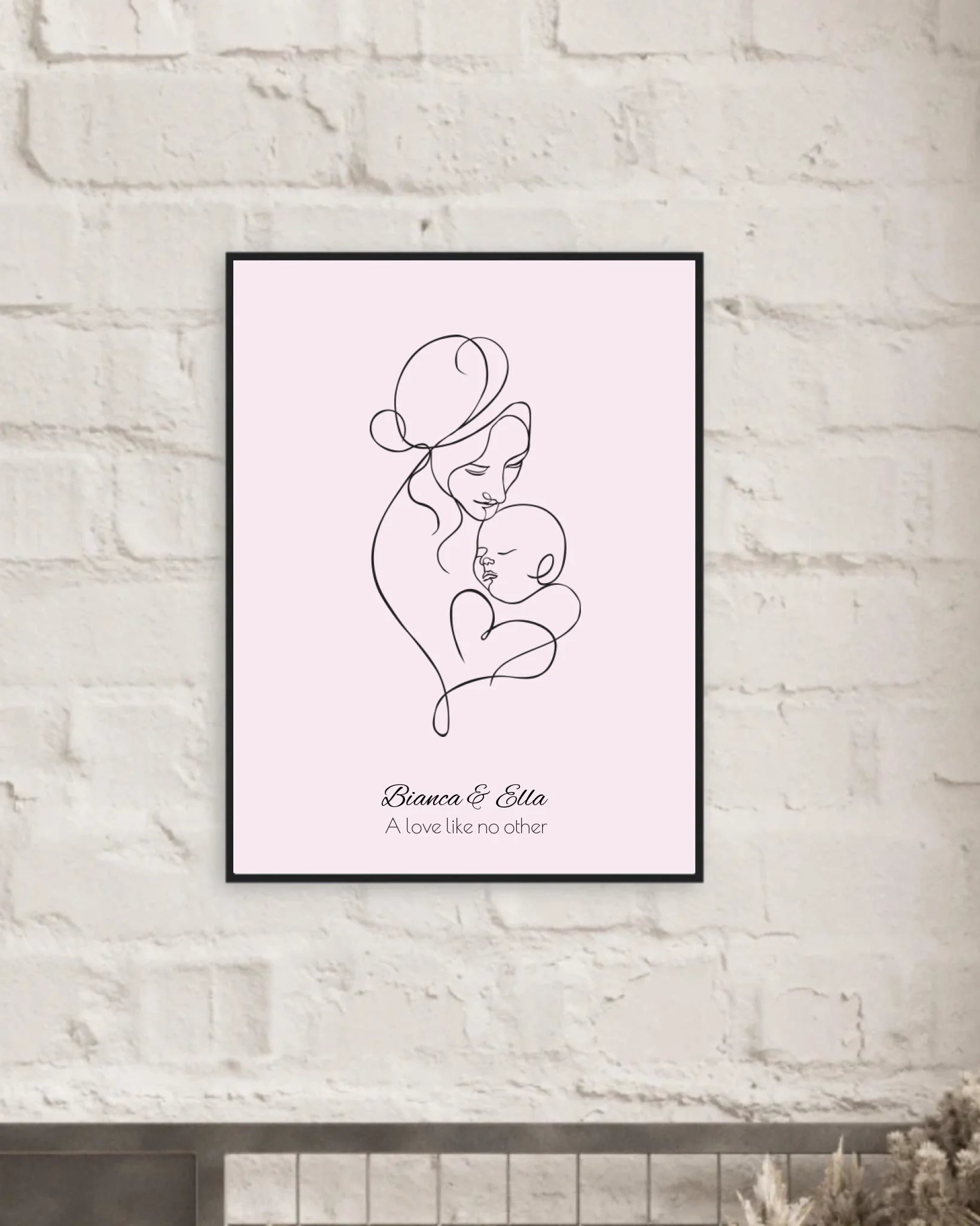 Absolut! Dieses Fineline-Poster ist ein liebevolles Geschenk zur Geburt, für frischgebackene Mamas, zur Babyshower oder zum Muttertag. Ein persönliches Kunstwerk voller Gefühl.
