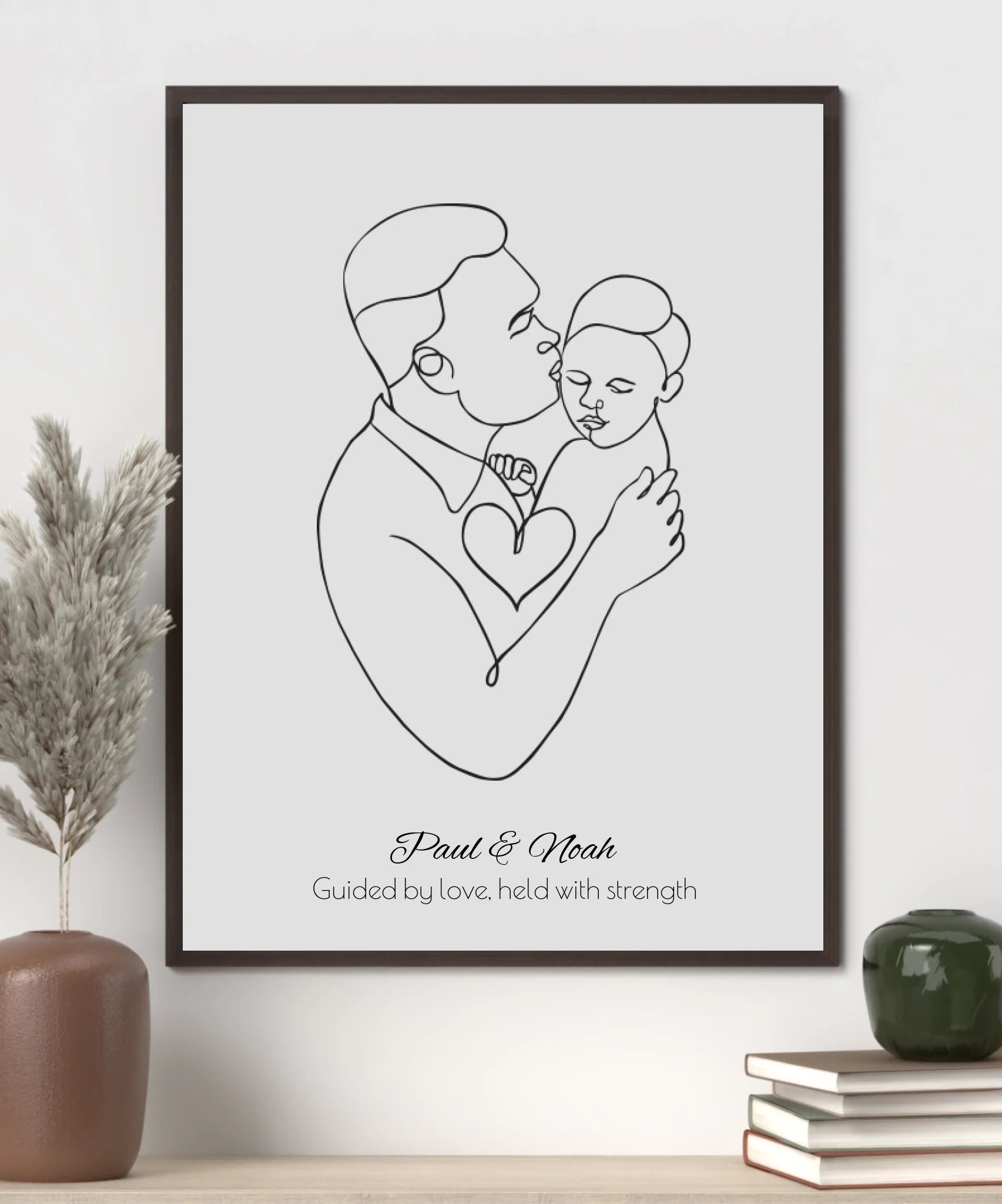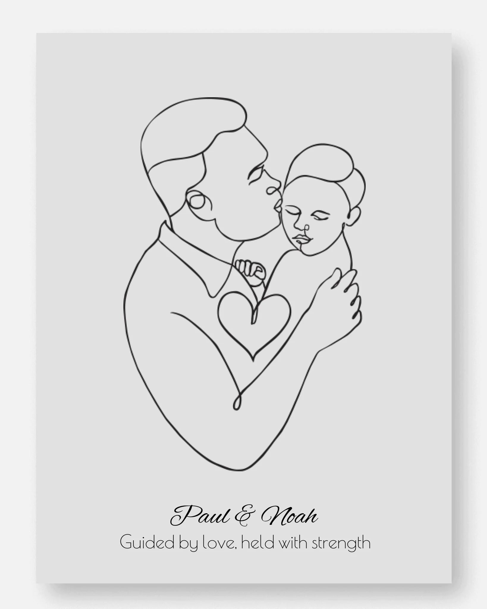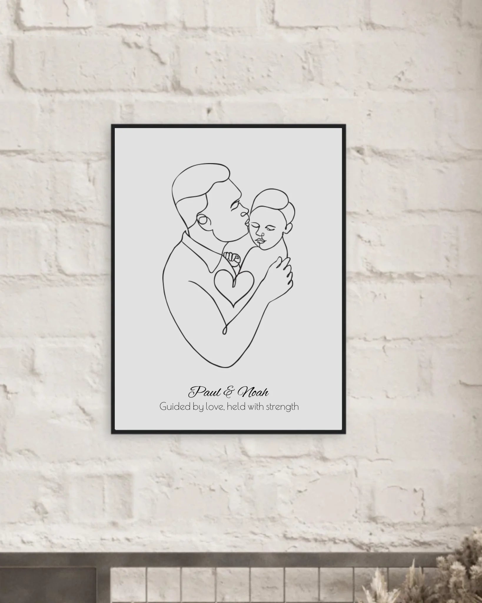 Das Poster kann mit den Namen von Vater und Kind personalisiert werden. Zusätzlich kannst du einen individuellen liebevollen Spruch hinzufügen. So wird das Kunstwerk zu einer emotionalen Erinnerung voller Bedeutung.