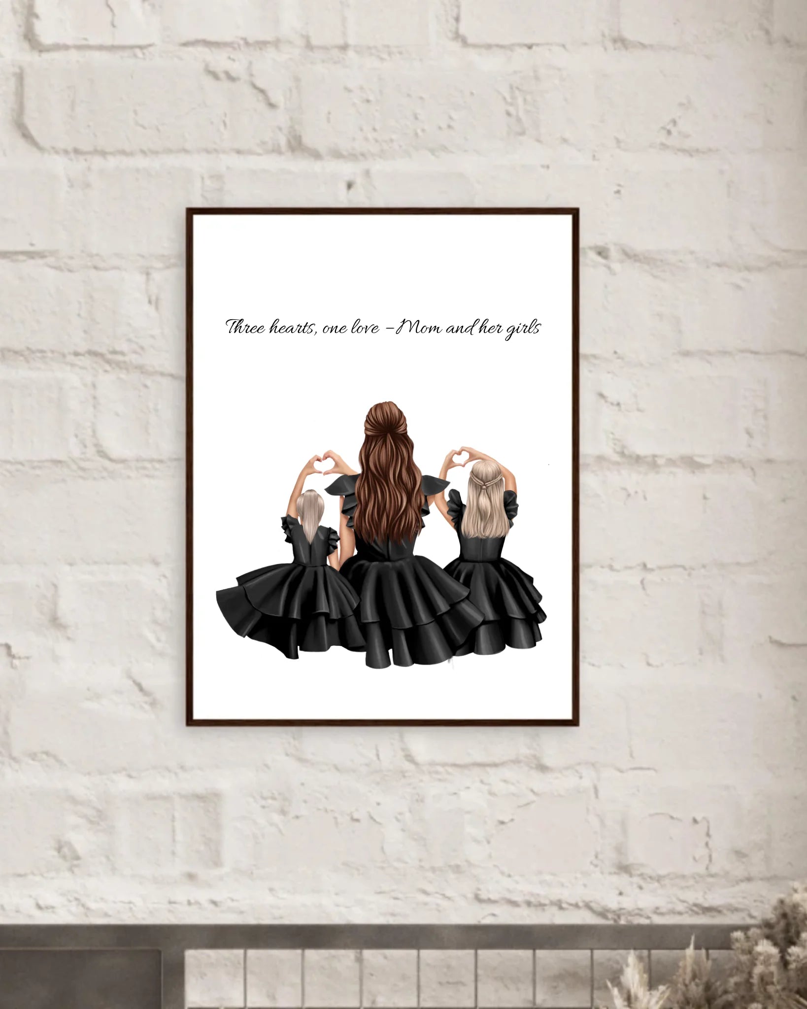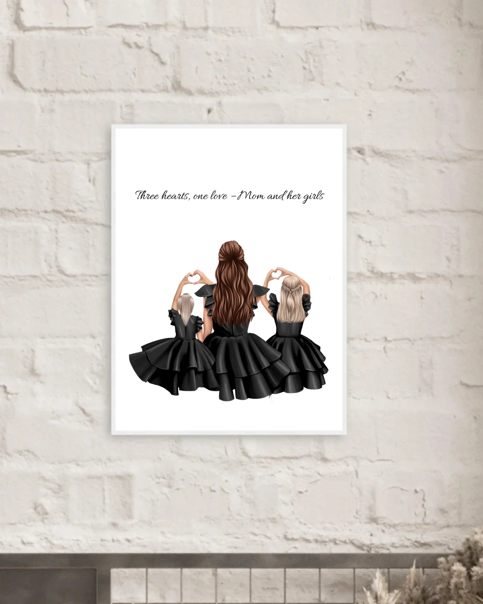 Dieses liebevoll gestaltete Poster zeigt eine Mutter mit ihren beiden Töchtern - innig verbunden, stilvoll gekleidet und perfekt aufeinander abgestimmt. Ob als Geschenk zum Muttertag, Geburtstag oder einfach als Erinnerung an die besondere Mutter-Tochter-Beziehung: Dieses Poster wird Herzen berühren.
