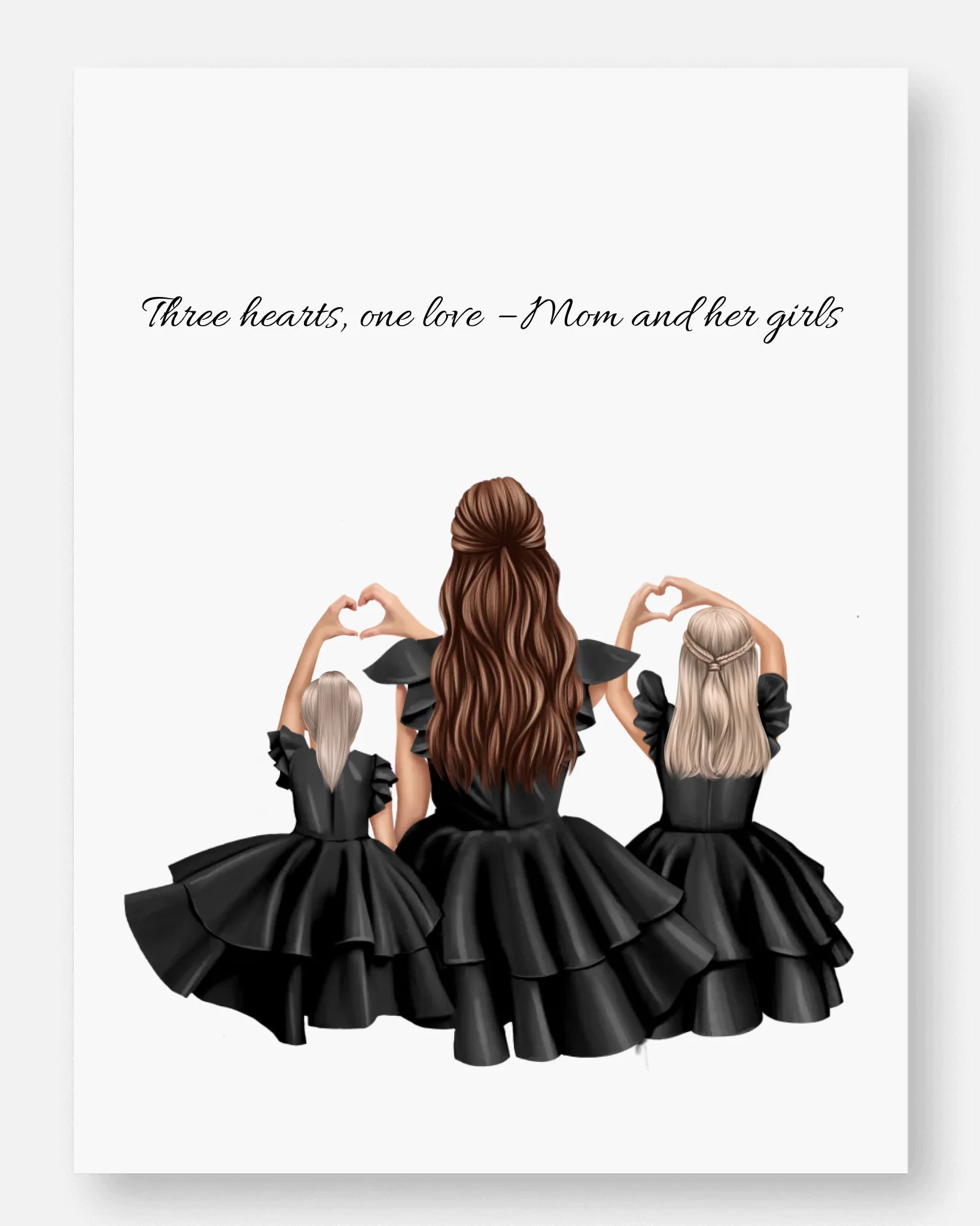 Three hearts, one love - personalisiertes Poster für Mama und ihre Töchter