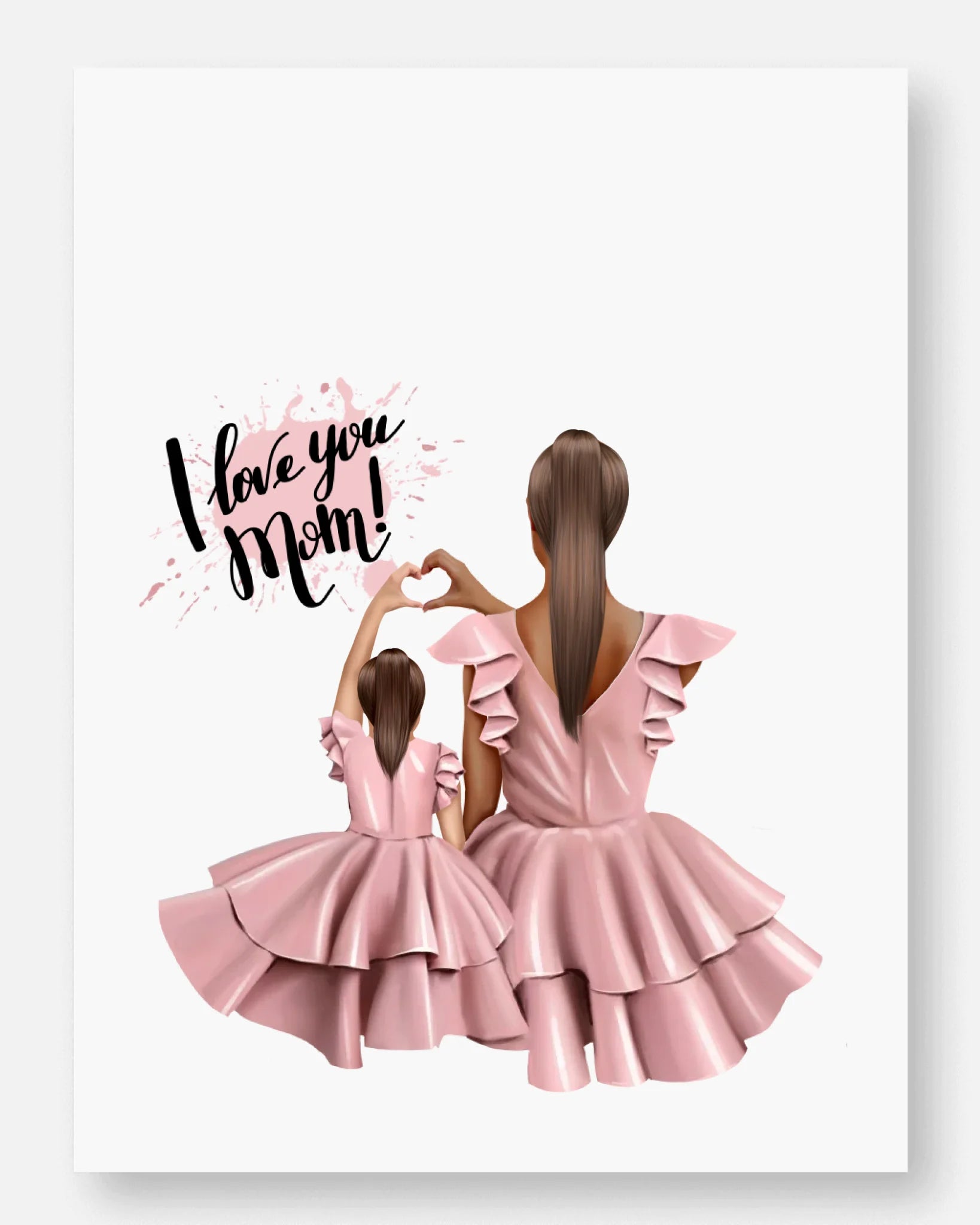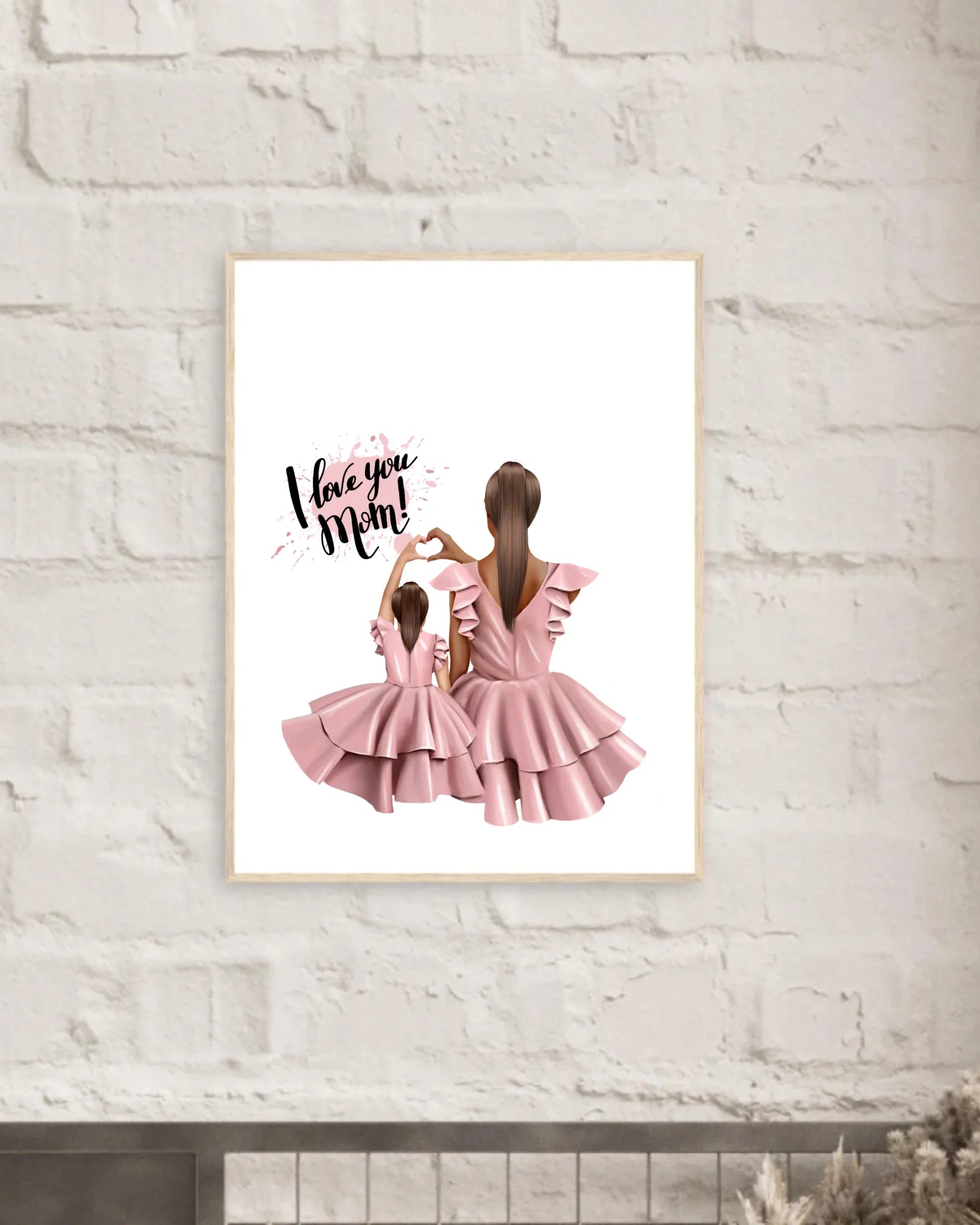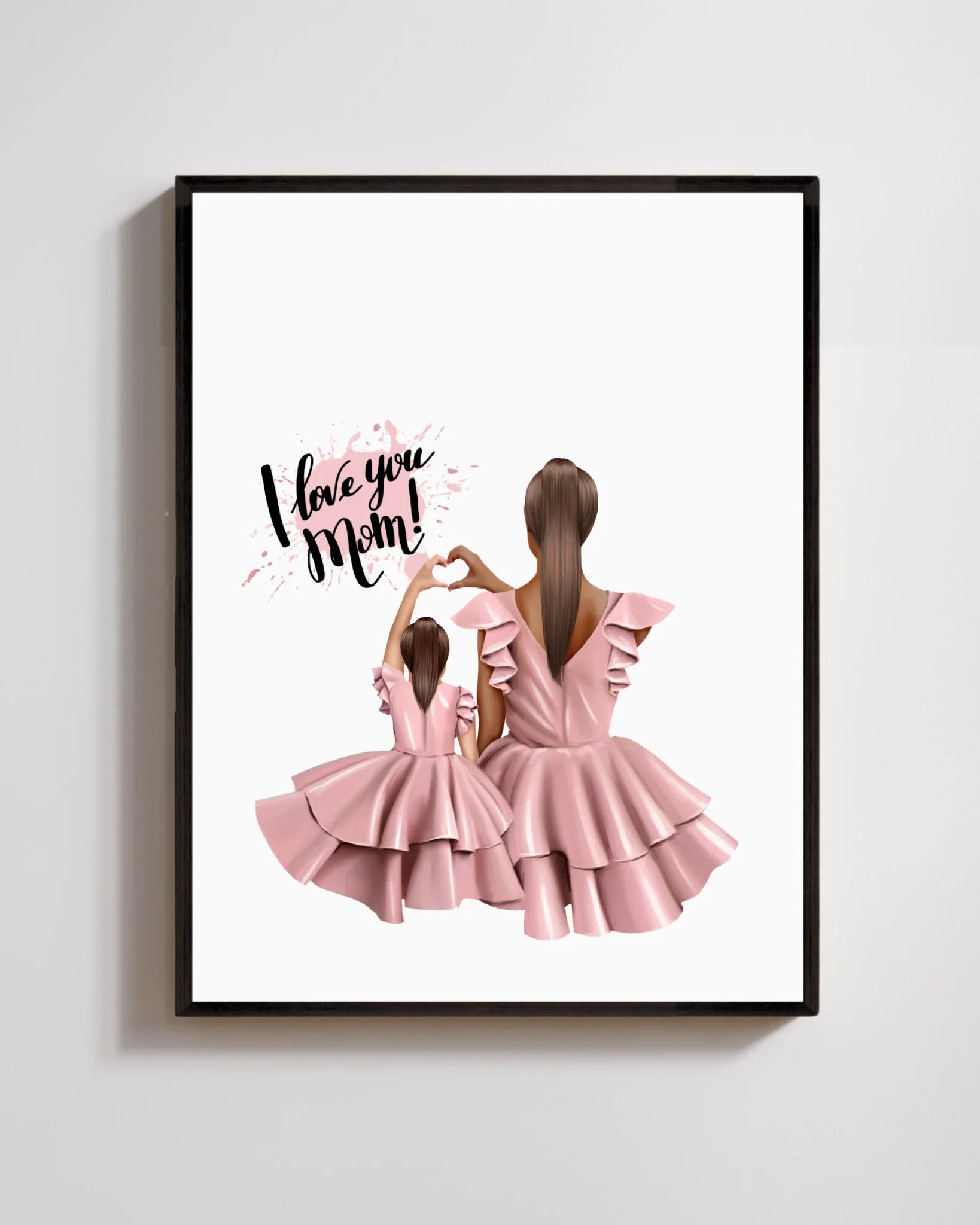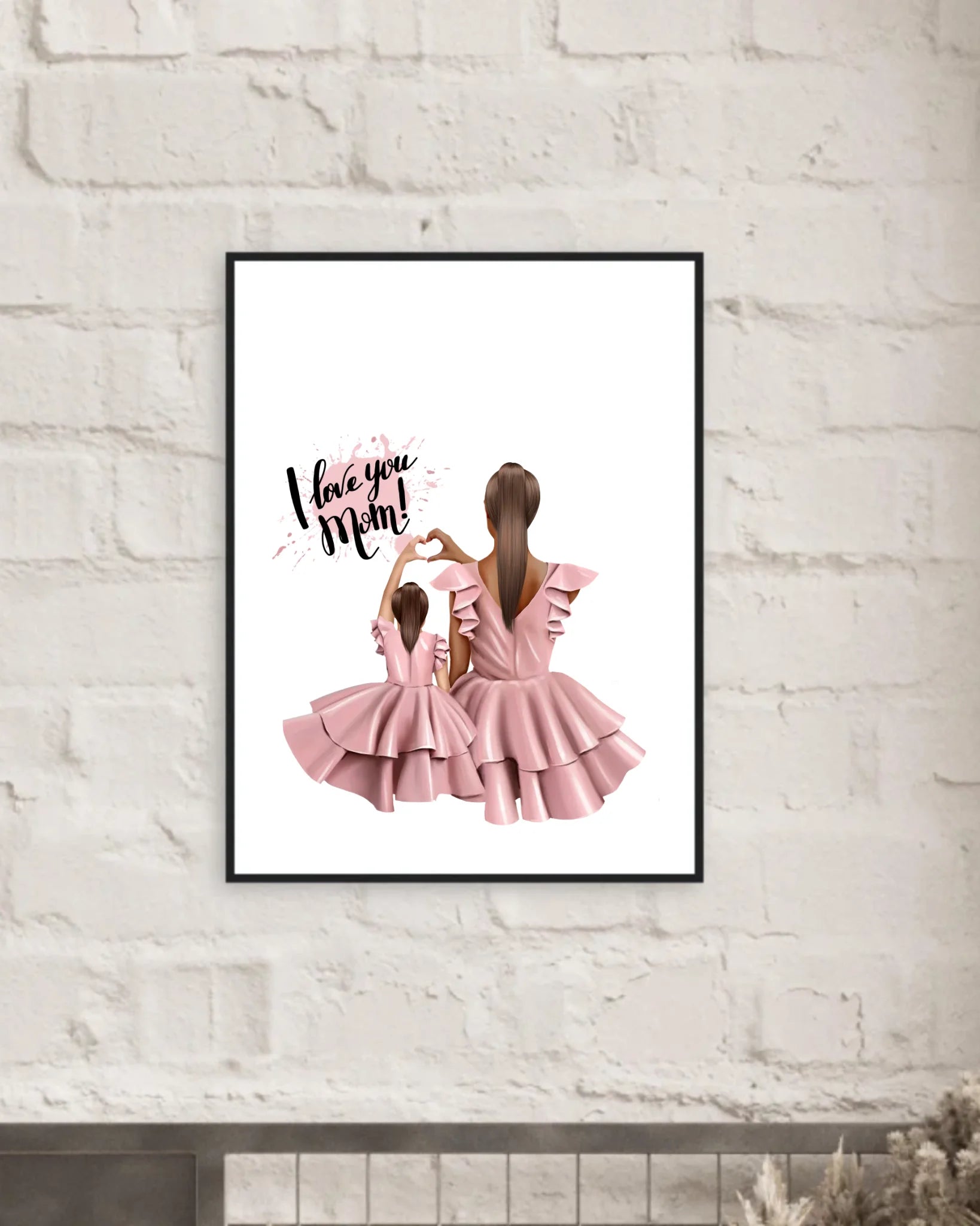 Dieses liebevoll gestaltete Poster fängt die ganz besondere Bindung zwischen Mutter und Tochter ein. Mit den anpassbaren Outfits, Frisuren, Hauttönen und Farbklecksen gestaltest du ein persönliches Kunstwerk, das so einzigartig ist wie eure Beziehung. Ob als Geschenk zum Muttertag, Geburtstag oder einfach als Erinnerung an euer Miteinander - dieses Poster sagt mehr als tausend Worte: I love you, Mom!