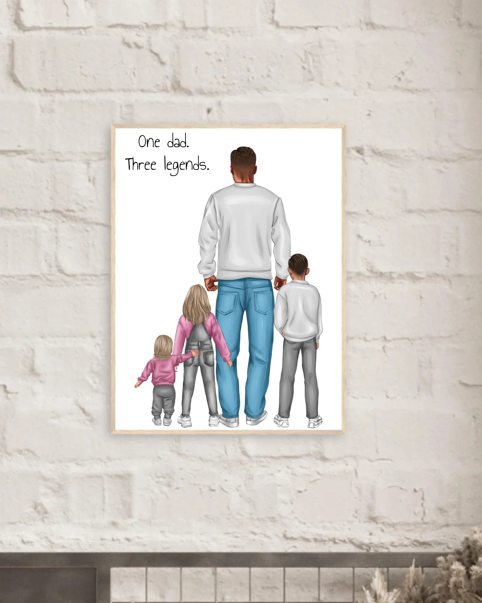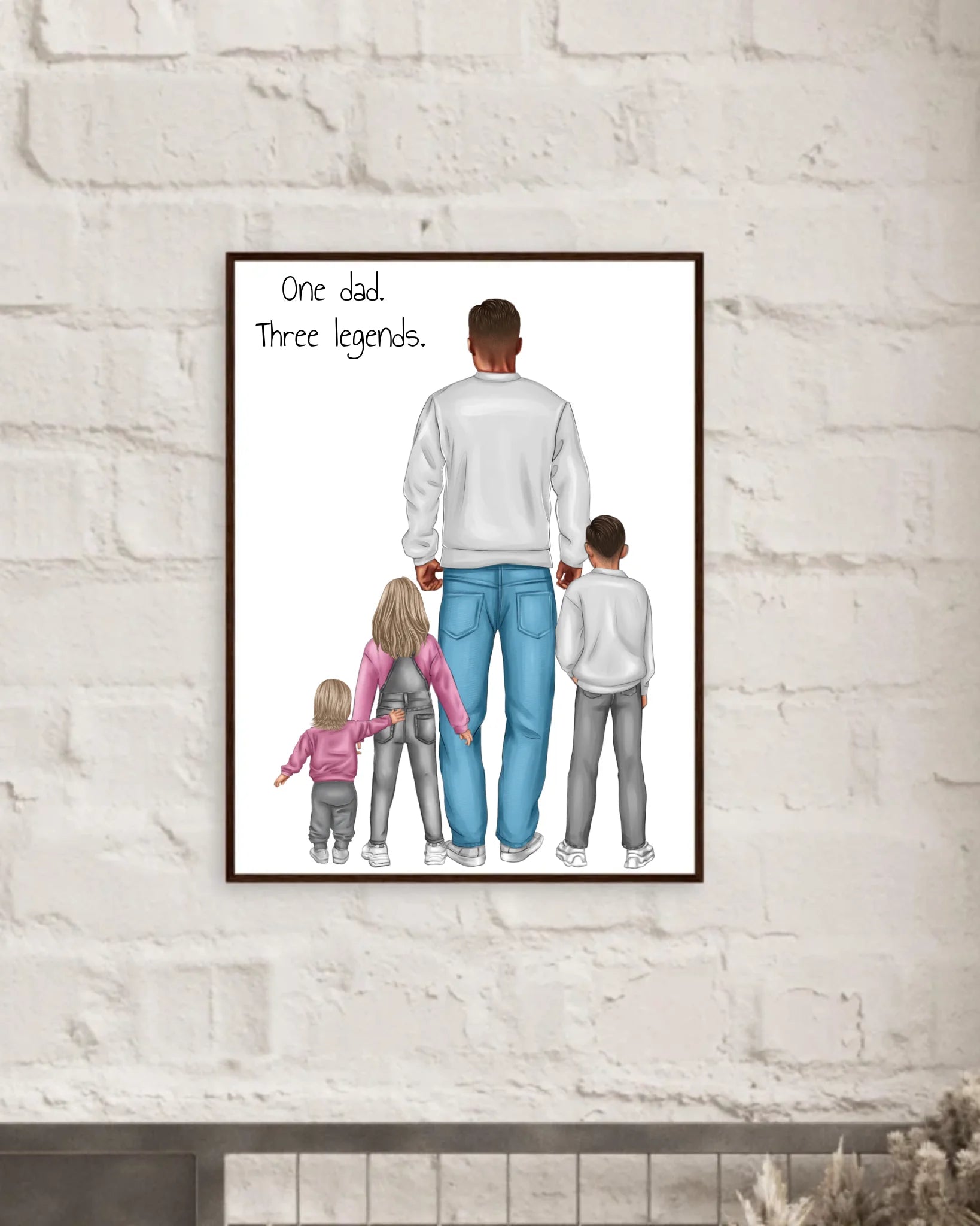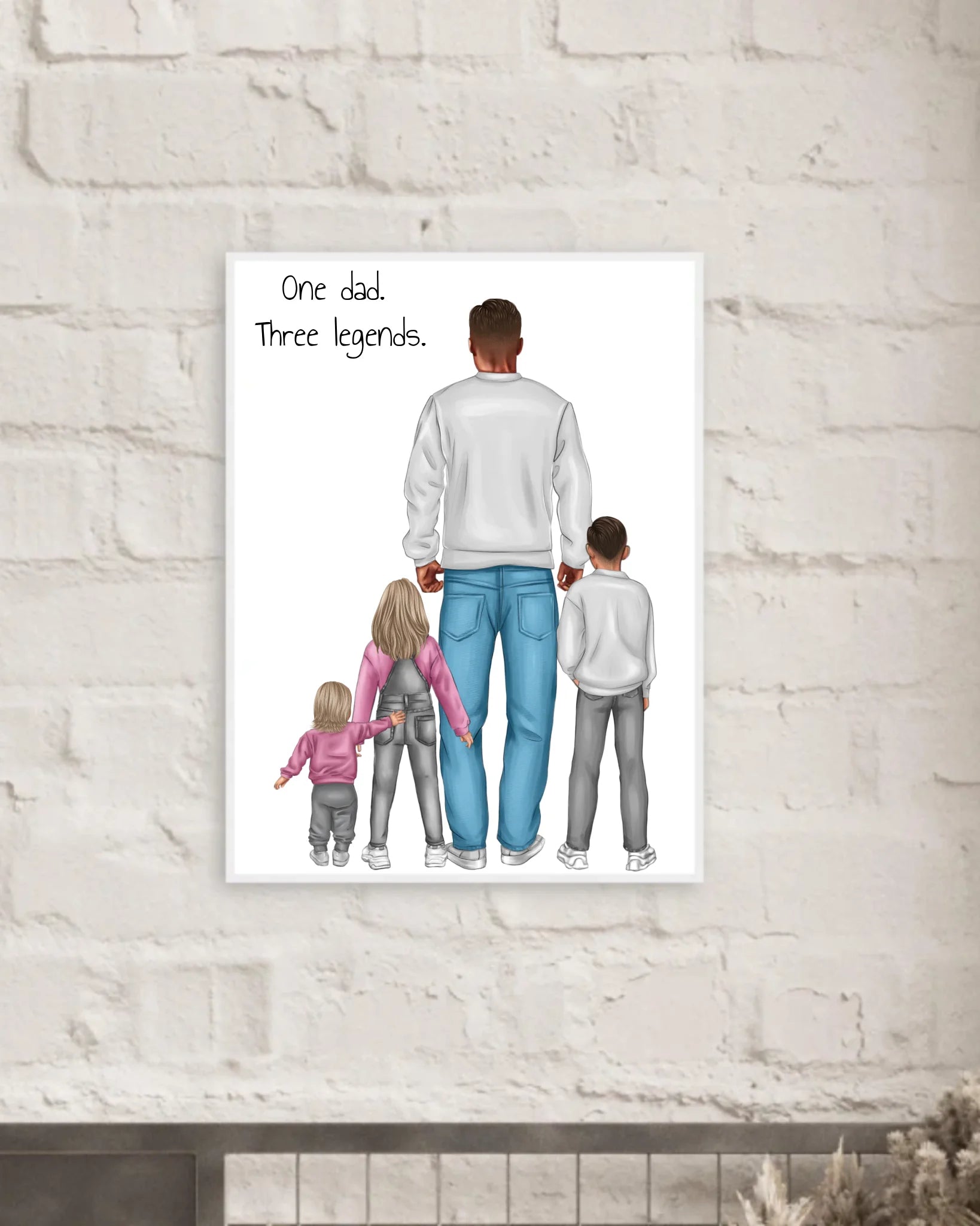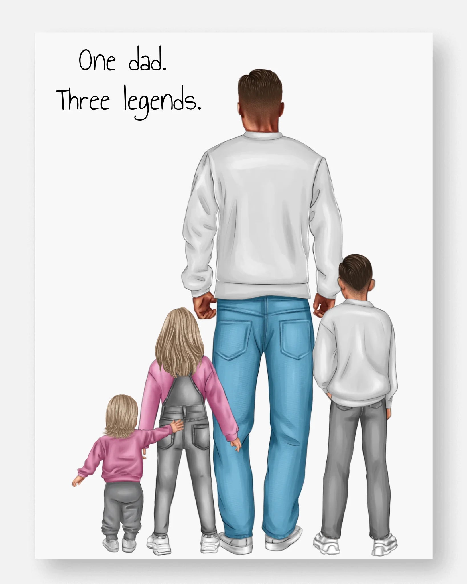 Poster Vater mit 3 Kindern - personalisiert