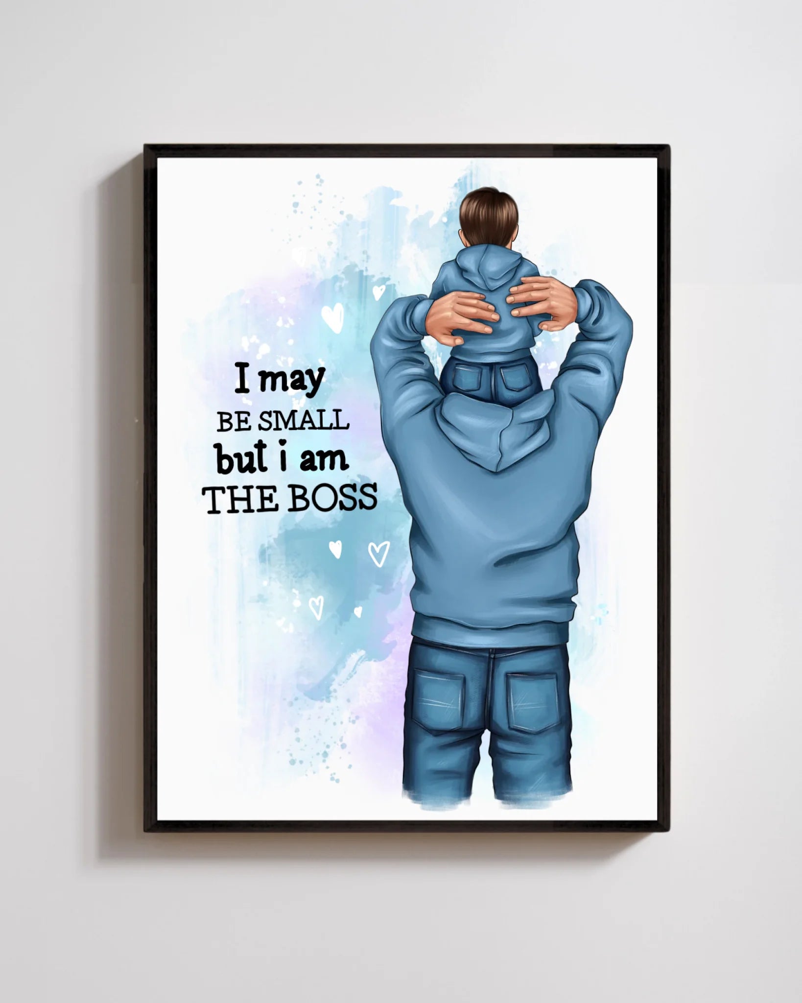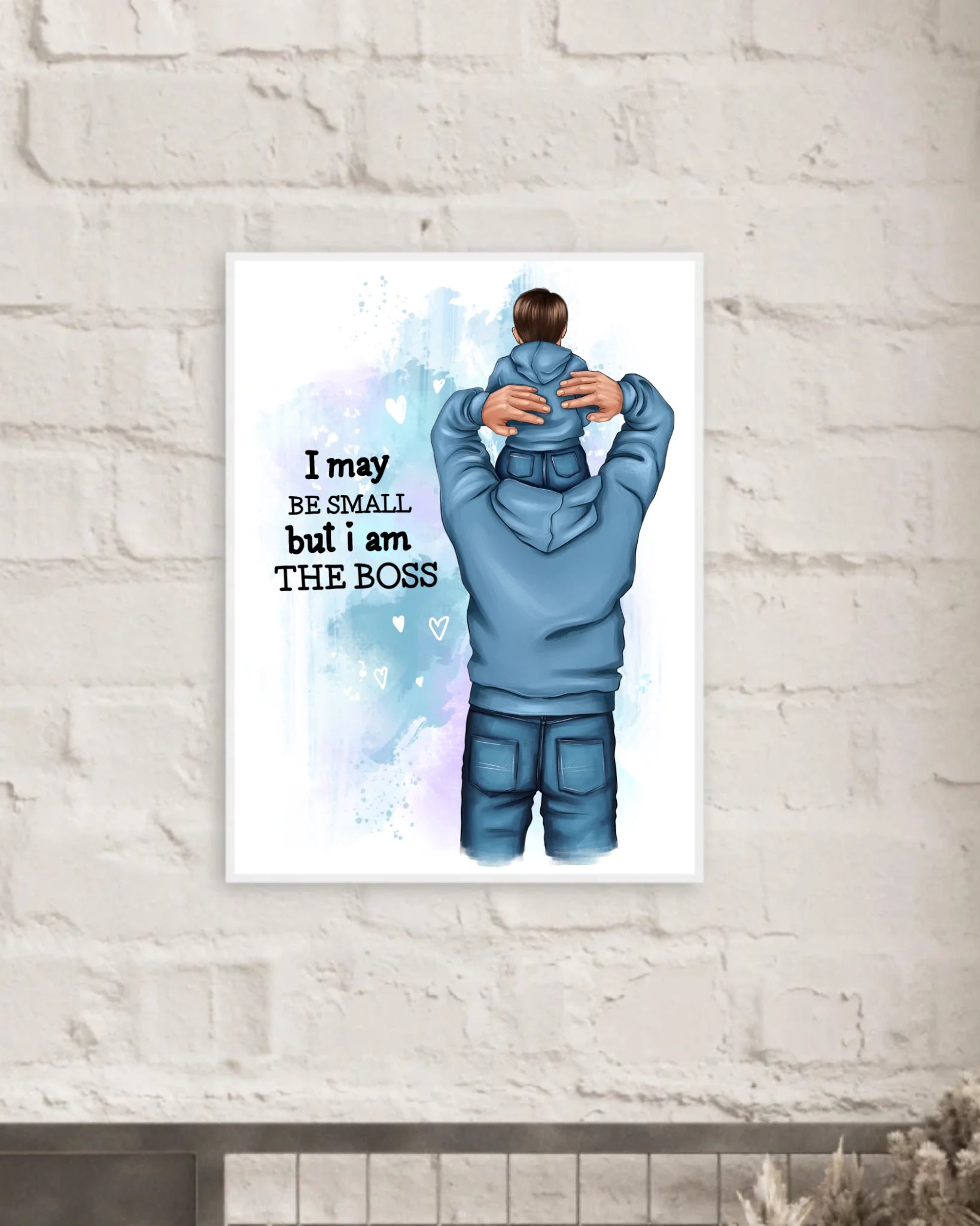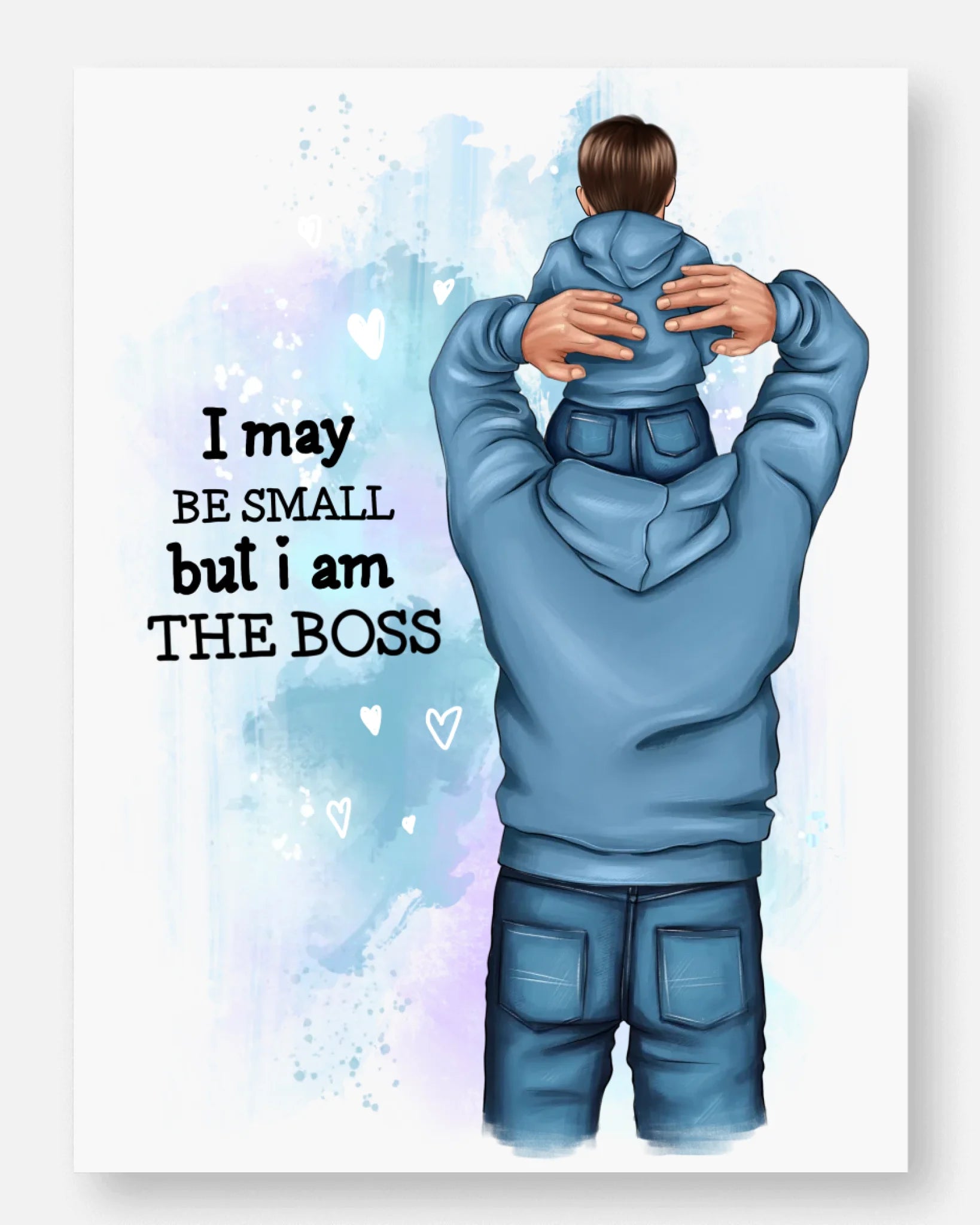 Es zeigt einen liebevollen Moment zwischen Vater und Sohn – oder der ganzen Familie – und wird durch eure persönliche Gestaltung zu einem einzigartigen Kunstwerk. Perfekt, um eure besondere Bindung stilvoll festzuhalten.