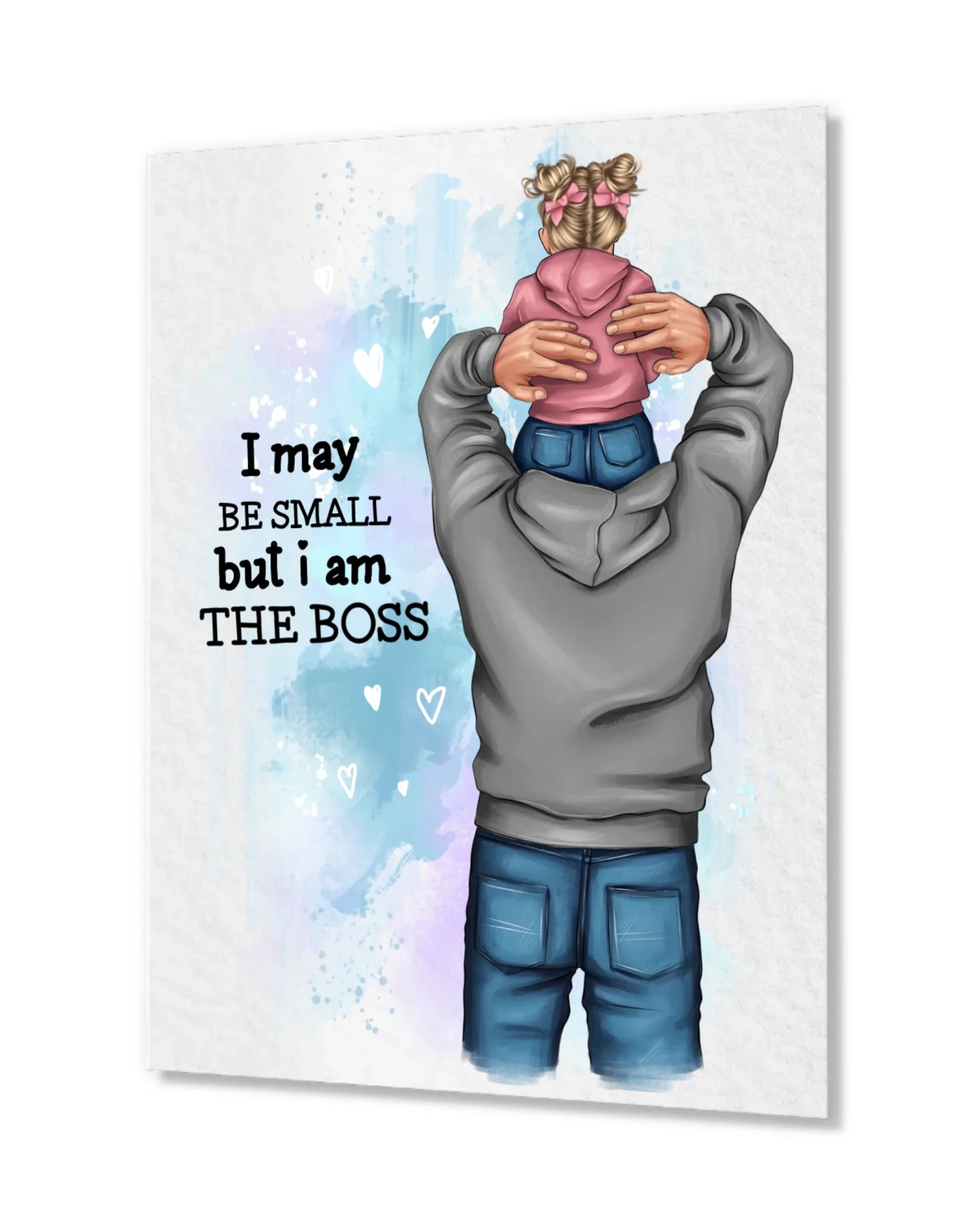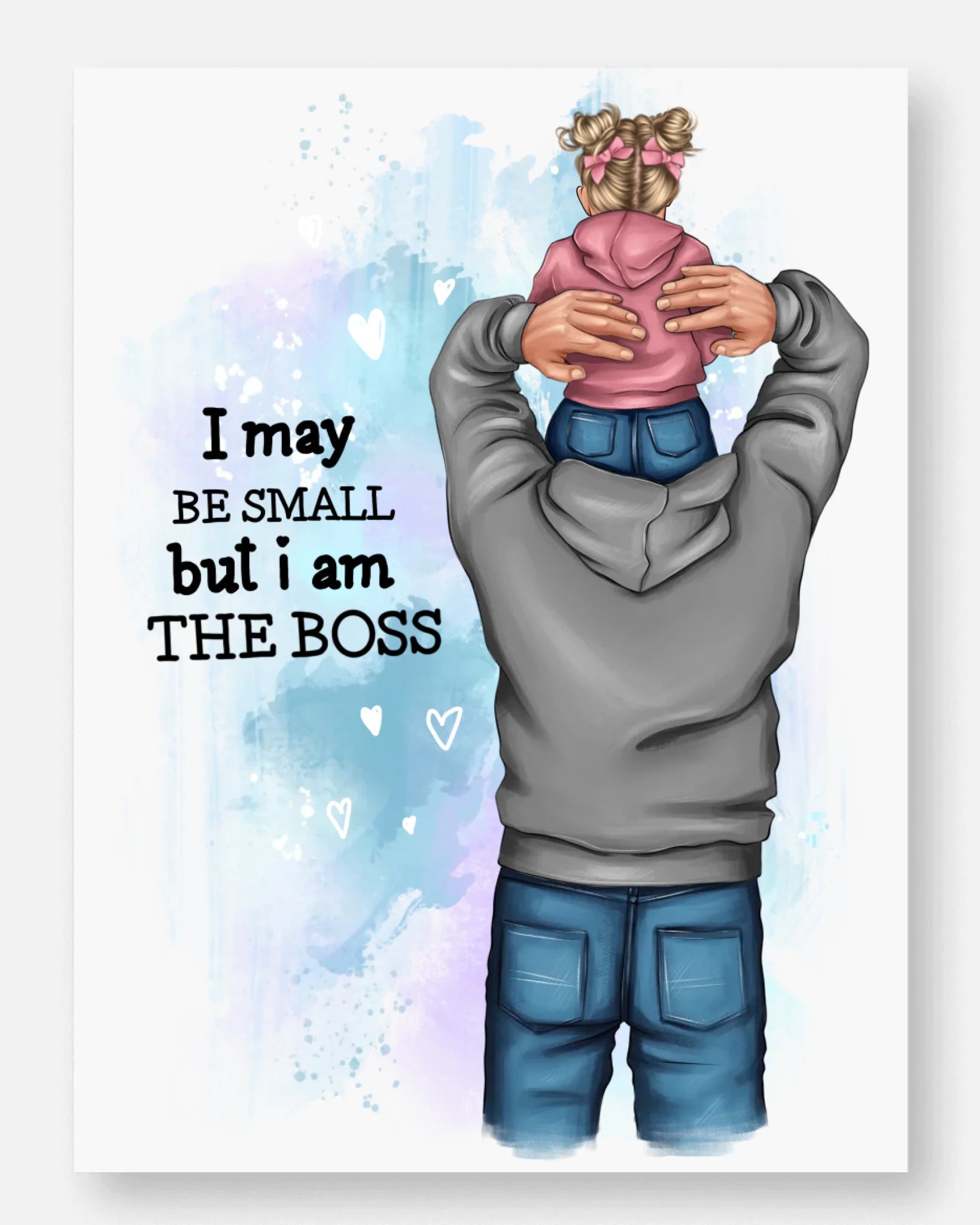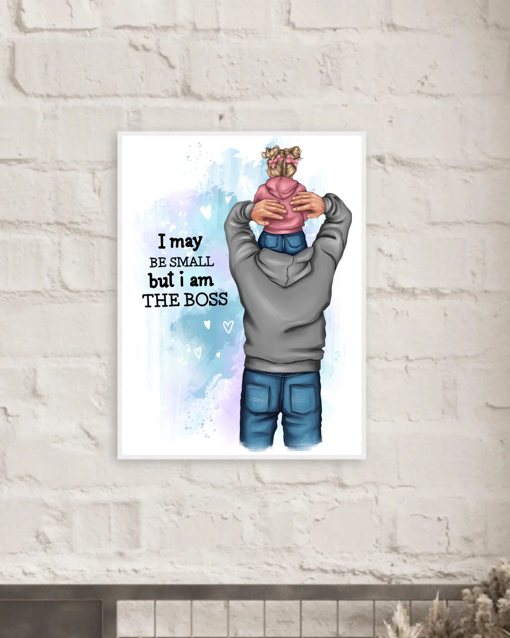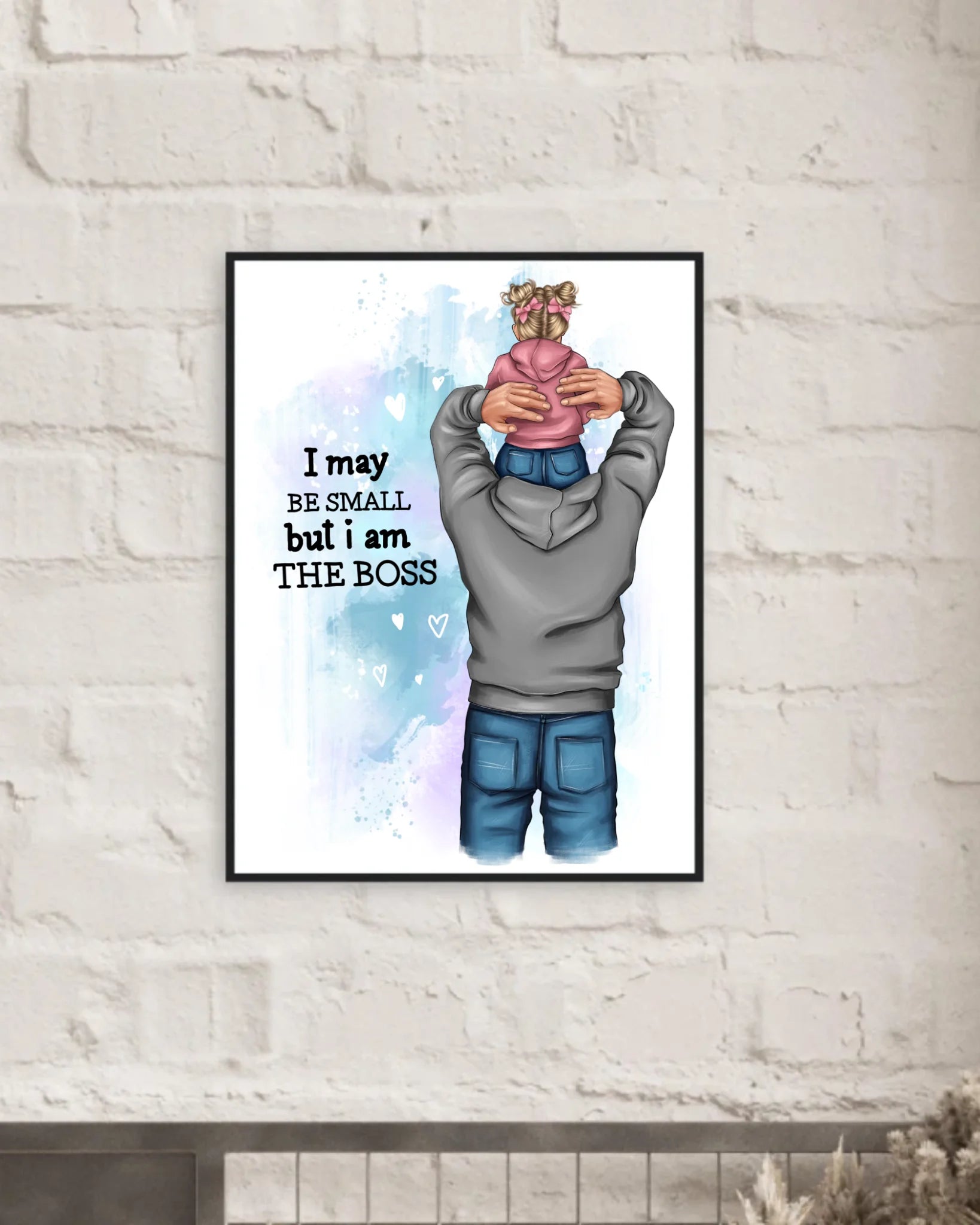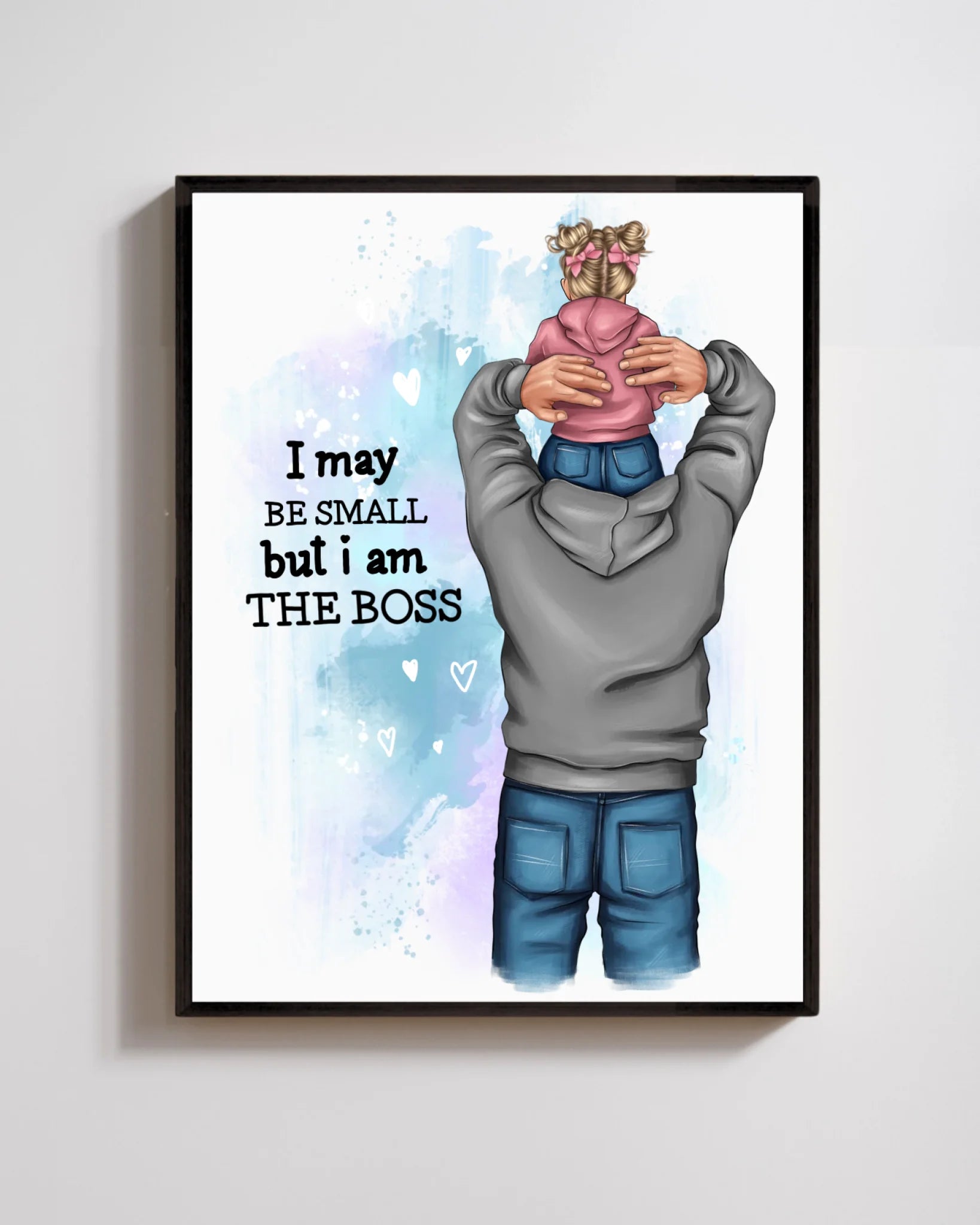 Das Poster stellt einen liebevollen Moment zwischen Vater und Tochter dar – auf Wunsch ergänzt durch die Mutter. Es steht für Nähe, Vertrauen und die besondere familiäre Verbindung.
